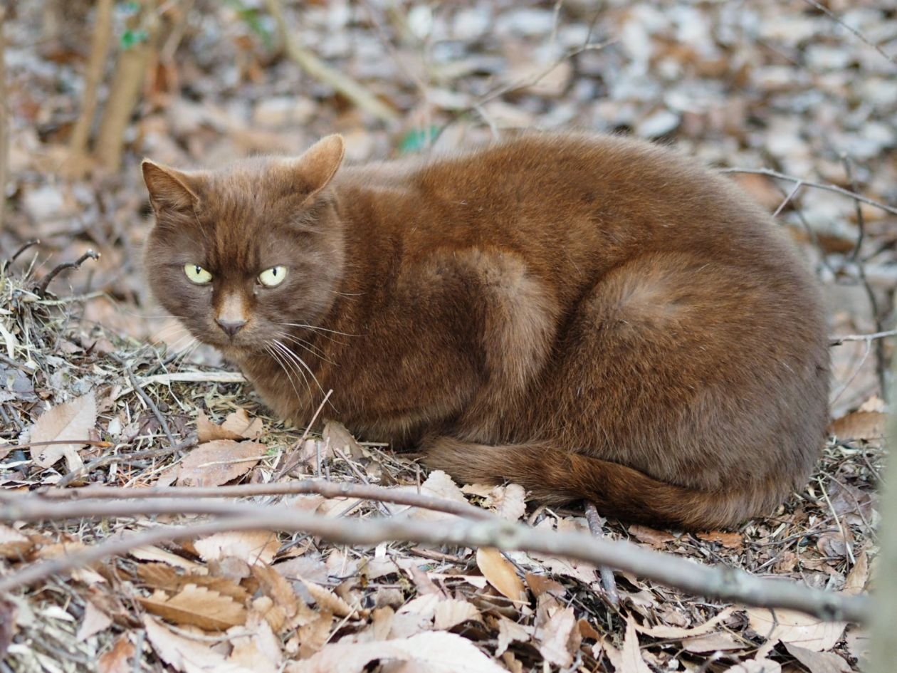 【みやま公園】ブラウンの野良猫がいたよ! 2020年3月19日 by Okayamania玉野市のみやま公園によく生き物の写真を撮りに行きます。 一時期に比べると数は減りましたが、猫の写真はやはり定番なのですが…。ブラウンの毛を持つ猫がいました。ちょっとボスっぽい貫禄のある子です。 見た目は和猫そのものですが、毛の色はバナナ・ブラウンを思わせる雰囲気です。光の当たり方が変わると、本当に綺麗なブラウンです。 バナナ・ブラウンとキジトラ猫の雑種とか、そのような感じなのでしょうか。目つきはきついのですが、意外と人に慣れていてかわいい子でした。 この記事を読んだ方はこんな記事も読んでいますこちらもお勧め みやまの猫3 ( ̄ー ̄)ニヤリ