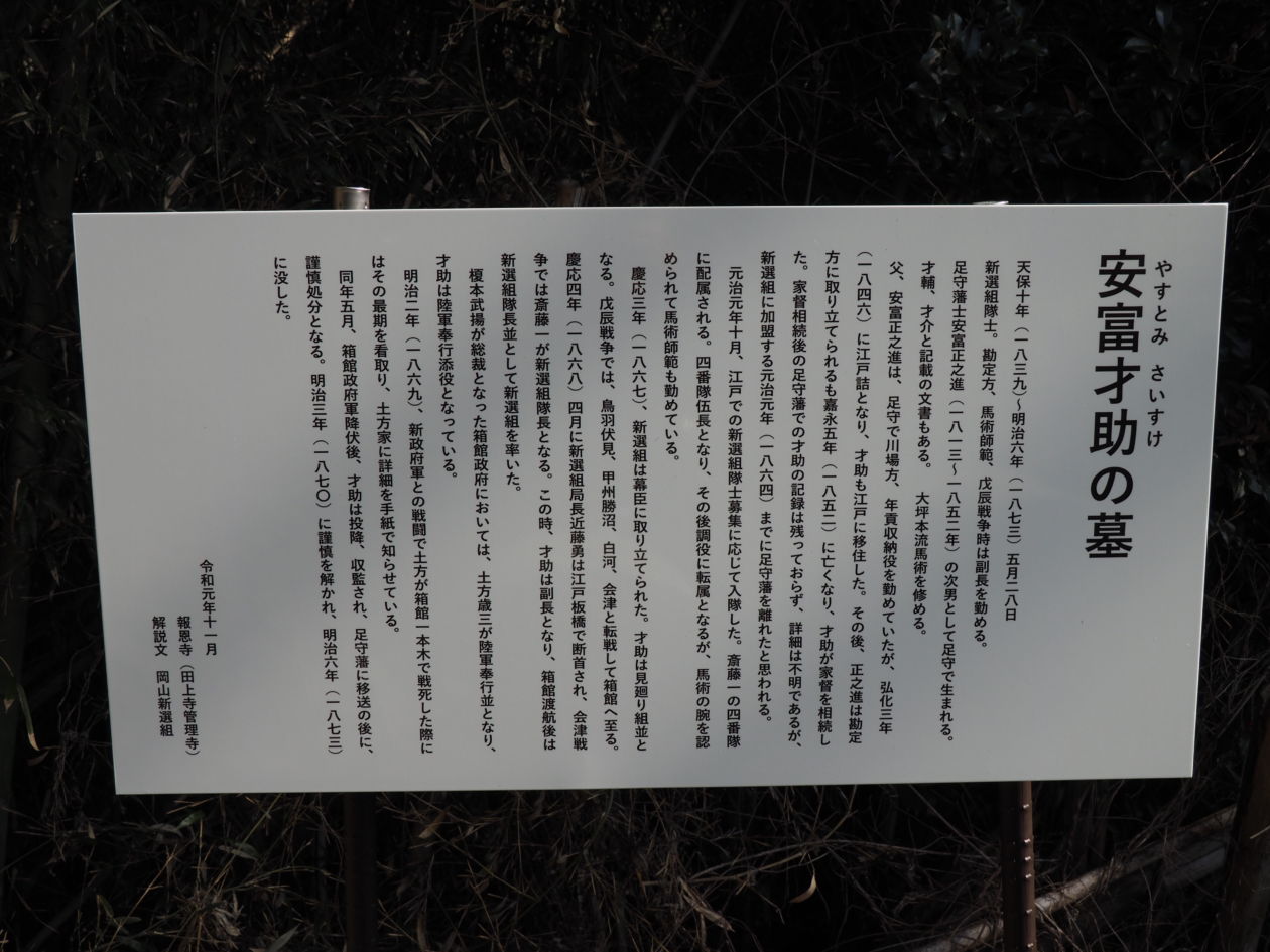 岡山市北区足守の田上寺にある新選組の安富才助の墓地へ行ってきました。