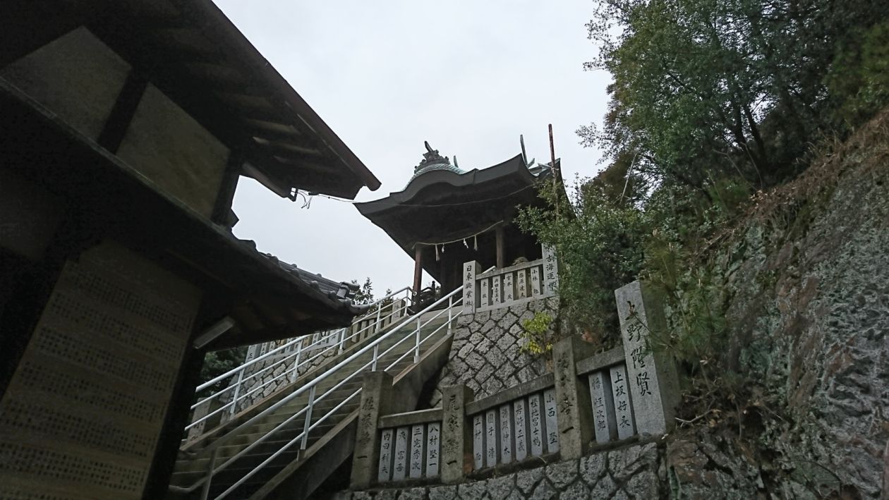 山を背負うように神社が作られており、本殿は拝殿よりも随分と高い位置にあります。