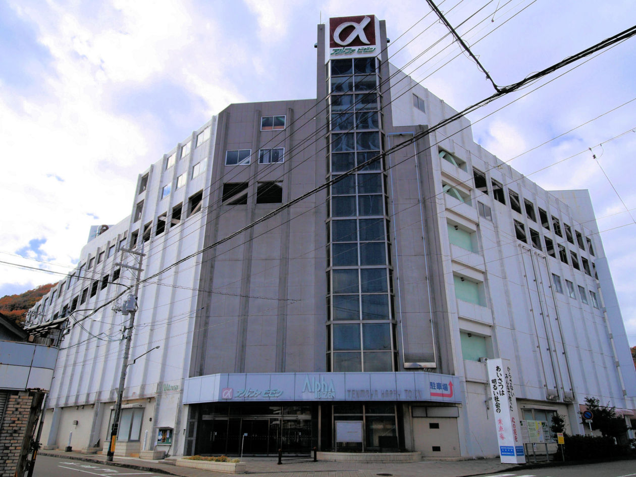 閉店後にNPO法人が賃貸していた期間はありますが、建物の外観はアルファビゼン当時のままです。