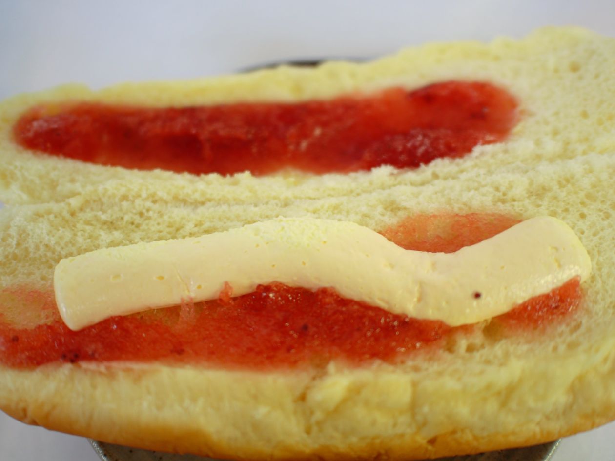 意外とマーガリンのまろやかな感じと、イチゴジャムのすっぱい感じがあって美味しいです。
