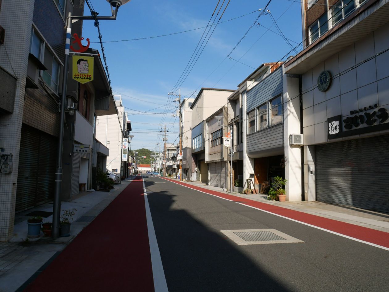 港から離れて宇野港商店街。