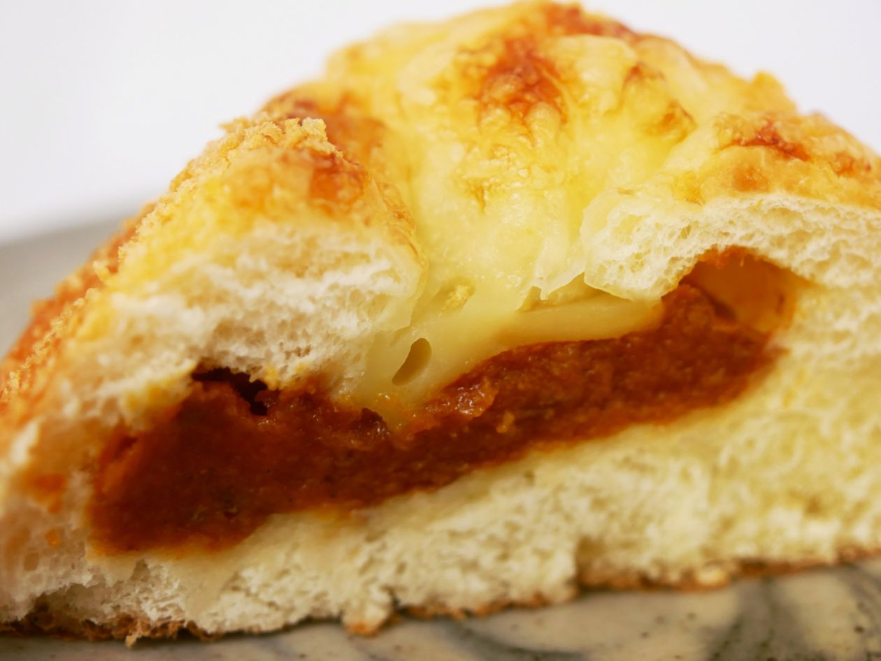 岡山木村屋 チーズとトマトの焼きカレーパンを食べたよ! 2020年5月27日 by Okayamania岡山木村屋・チーズとトマトの焼きカレーパン2020年5月の新作パン、チーズとトマトの焼きカレーパンを食べてみました。 現在行われているチーズフェアに伴う新作です。揚げパンっぽい感じの生地です。 カタログで見たのと少し雰囲気が違うので、間違えて別の商品を購入したかと思いました。中はコチラ。ルーにトマトの色が混ざって赤っぽく見えますが、辛くはありません。 チーズの風味も相まって、甘口くらいの感じです。美味しかったです。 この記事を読んだ方はこんな記事も読んでいますこちらもお勧め 備中福山城址を歩く…を、公開しました&2012年勤労感謝の日のイベント