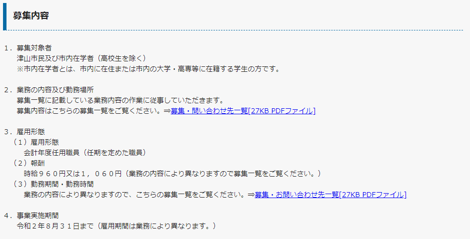津山市 失業者・学生を緊急雇用(https://www.rsk.co.jp/news/rsk20200527_3.html)