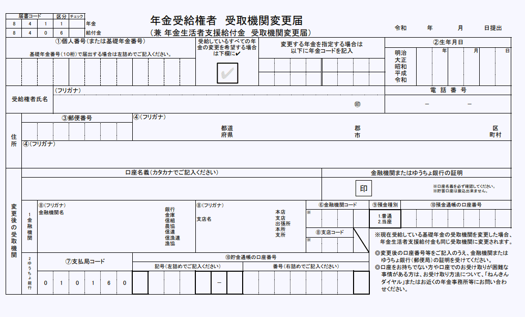 年金受給権者受け取り期間変更届です。