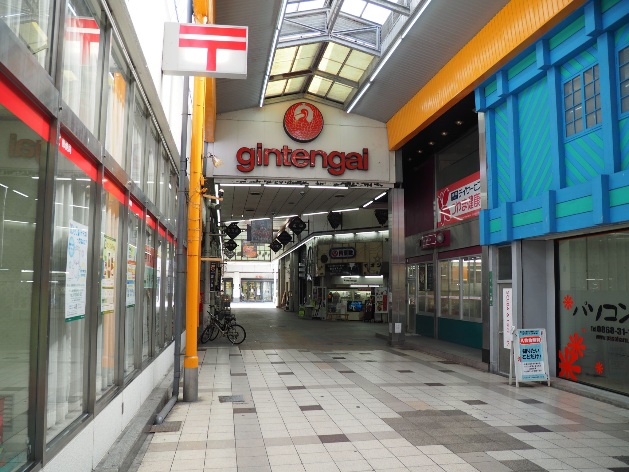 アルネ津山建設の際に縮小された為に、南北に50m、東西に20mの全長70mばかりの小さな商店街です。