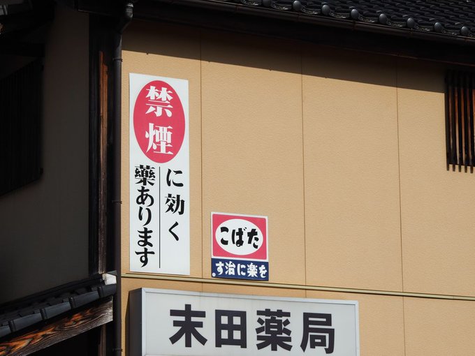 【津山市】ユニークな禁煙の看板があったよ 2026年2月3日2020年7月10日 by Okayamania津山市を歩いていて、ふと見かけた薬局の看板。 懐かしい「こばた」の看板。 昔の名残ならまだしも、薬局で煙草を売っているのか…?と思ったら、下にオチがありました。「たばこを楽に治す」禁煙薬の看板だったのですね。 レトロ風な看板を用いて、なかなか手が込んでいます。タイムスリップしたような看板ちなみにこちらは吹屋ふるさと村で見かけた「こばた」看板。 どちらも味わいがありますね。 この記事を読んだ方はこんな記事も読んでいますこちらもお勧め 【岡山市】土管のある遊園地を見つけたぞ!(東区・可知三丁目遊園地)