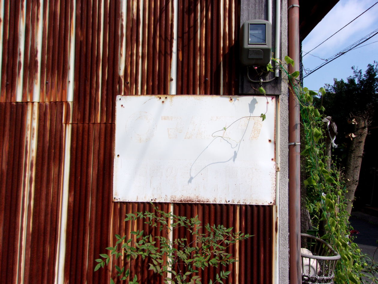 看板を貼り付けている壁がサビサビで、妙にマルフクの白さがアピールされています。