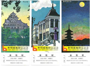 山陽本線、吉備線、伯備線の3路線が描き出す形を、なんと「かたつむり」に見立てて名付けられたキャンペーンの記念入場券です。