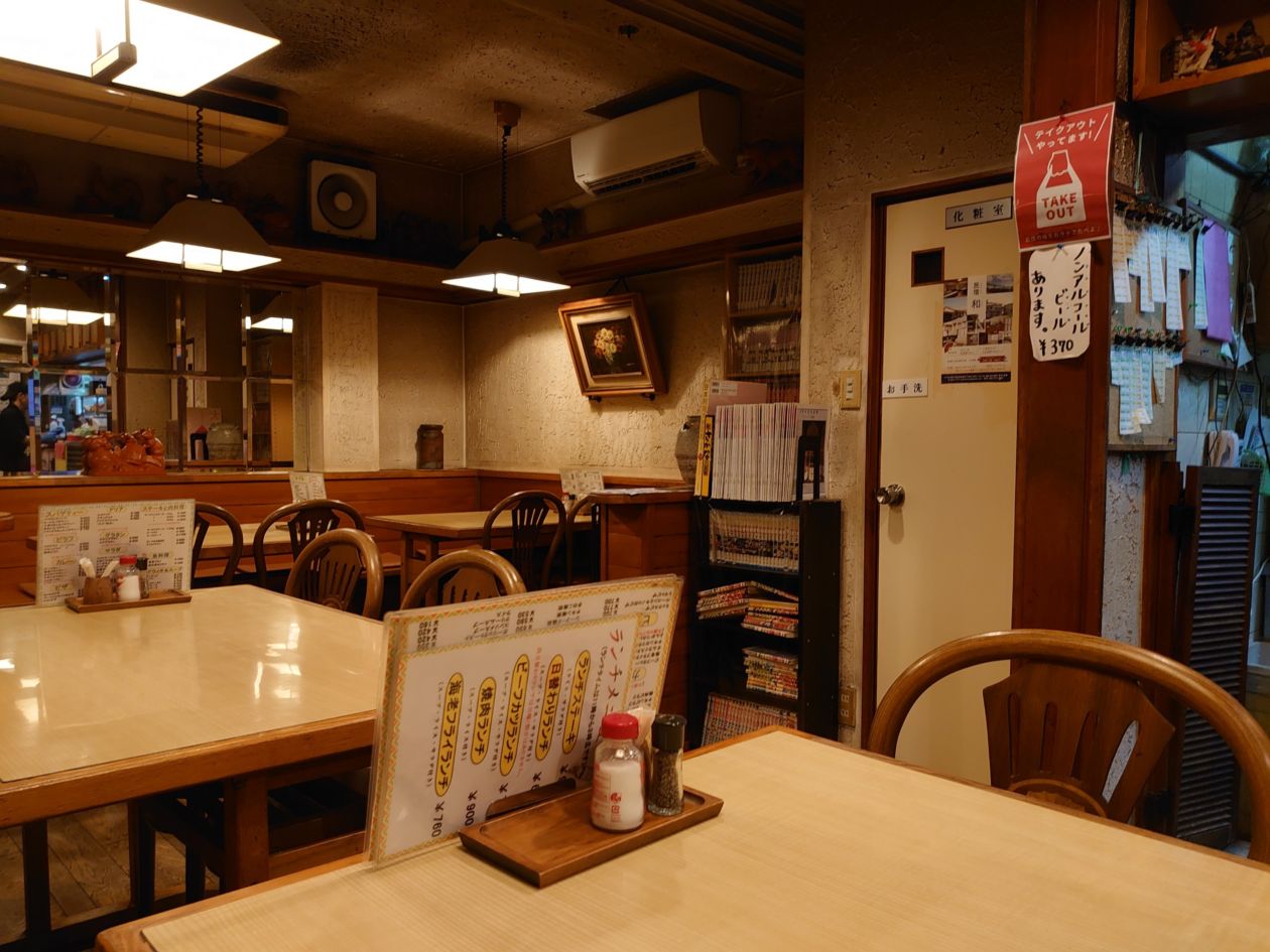 いつもの感じで2人掛けの席に着いたところ、「いいよ、広い机をつかいなよ」とおじさんに勧められて4人掛けに移らせて頂きました。