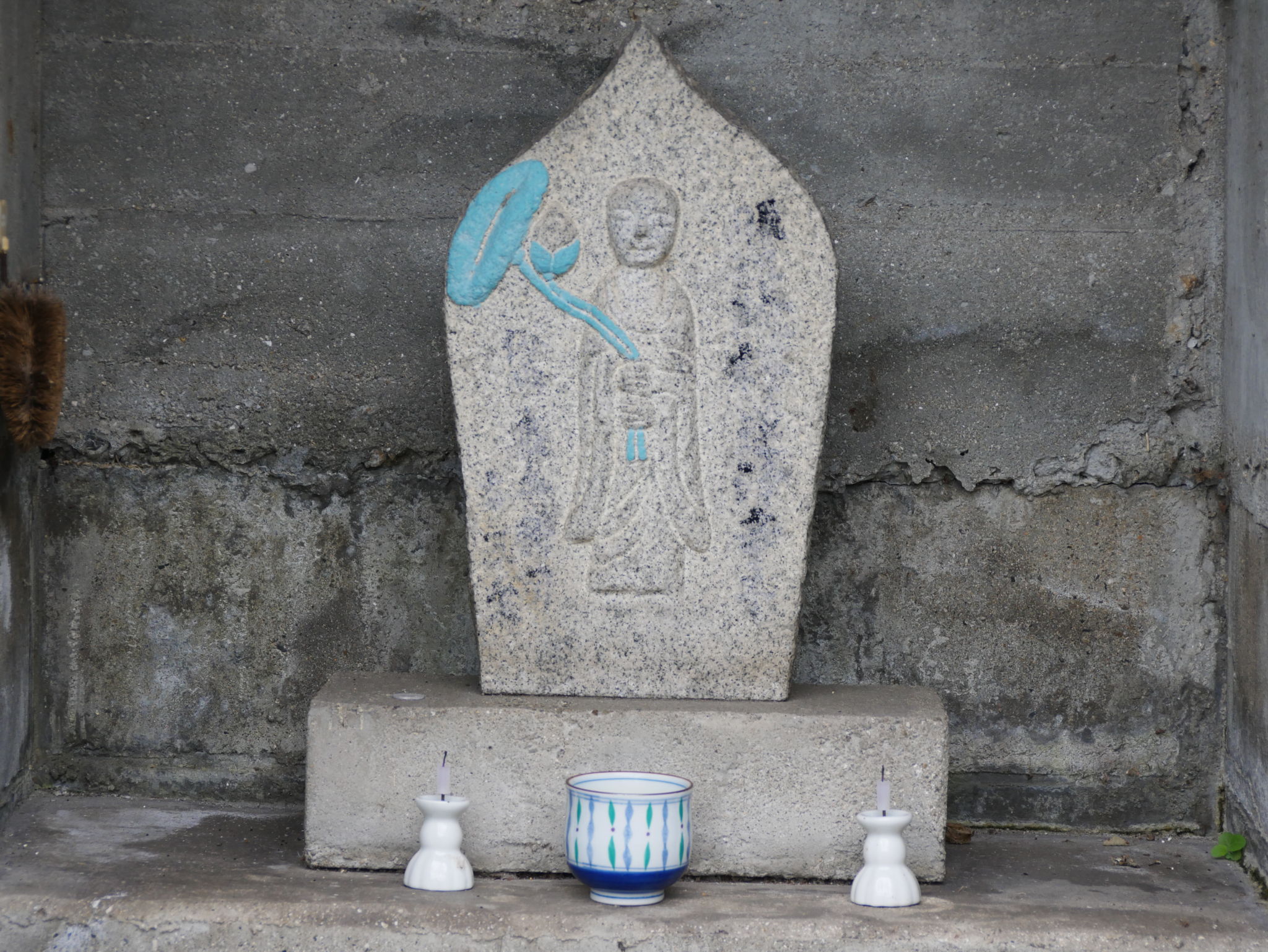 建物の塀には地蔵が飾られていました。
