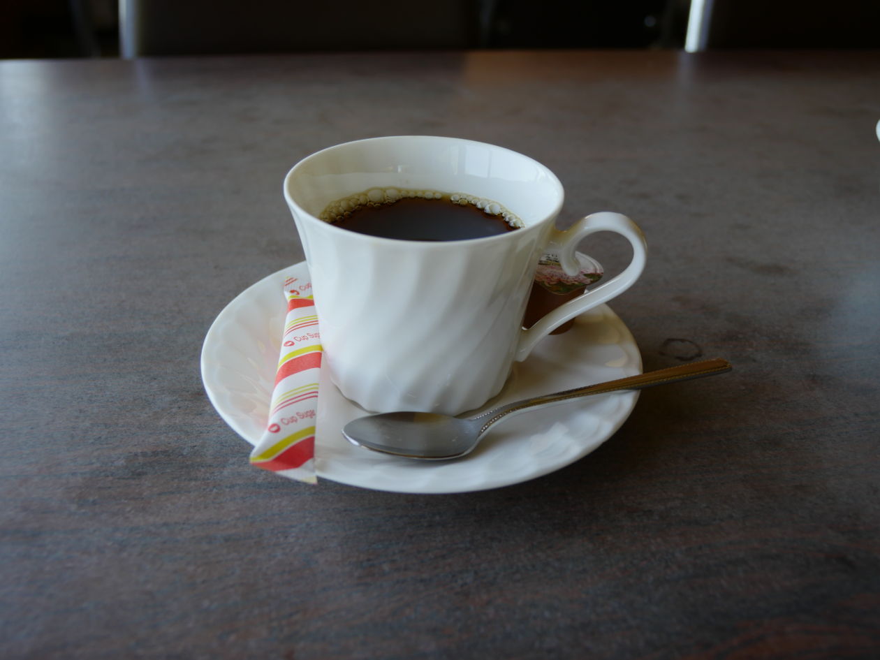 その直前に「看板を見た時から、コーヒーが欲しいと思っていたのですよ」とか吹聴していたので、なんとなく引けずにホットコーヒーを注文してしまいました。