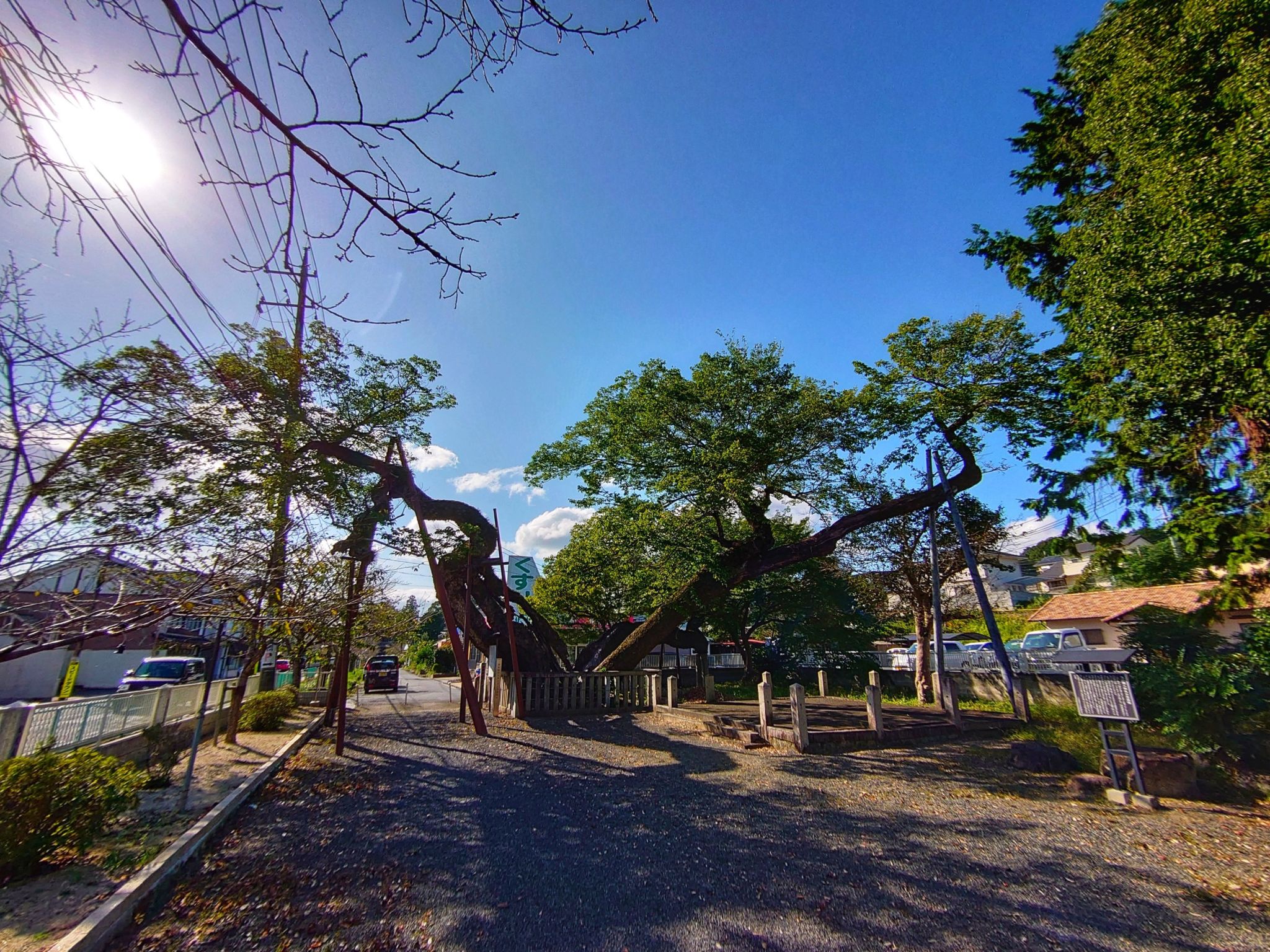 近づいてみると左右に広がる、ムクノキとは思えないような迫力の木が見えてきます。