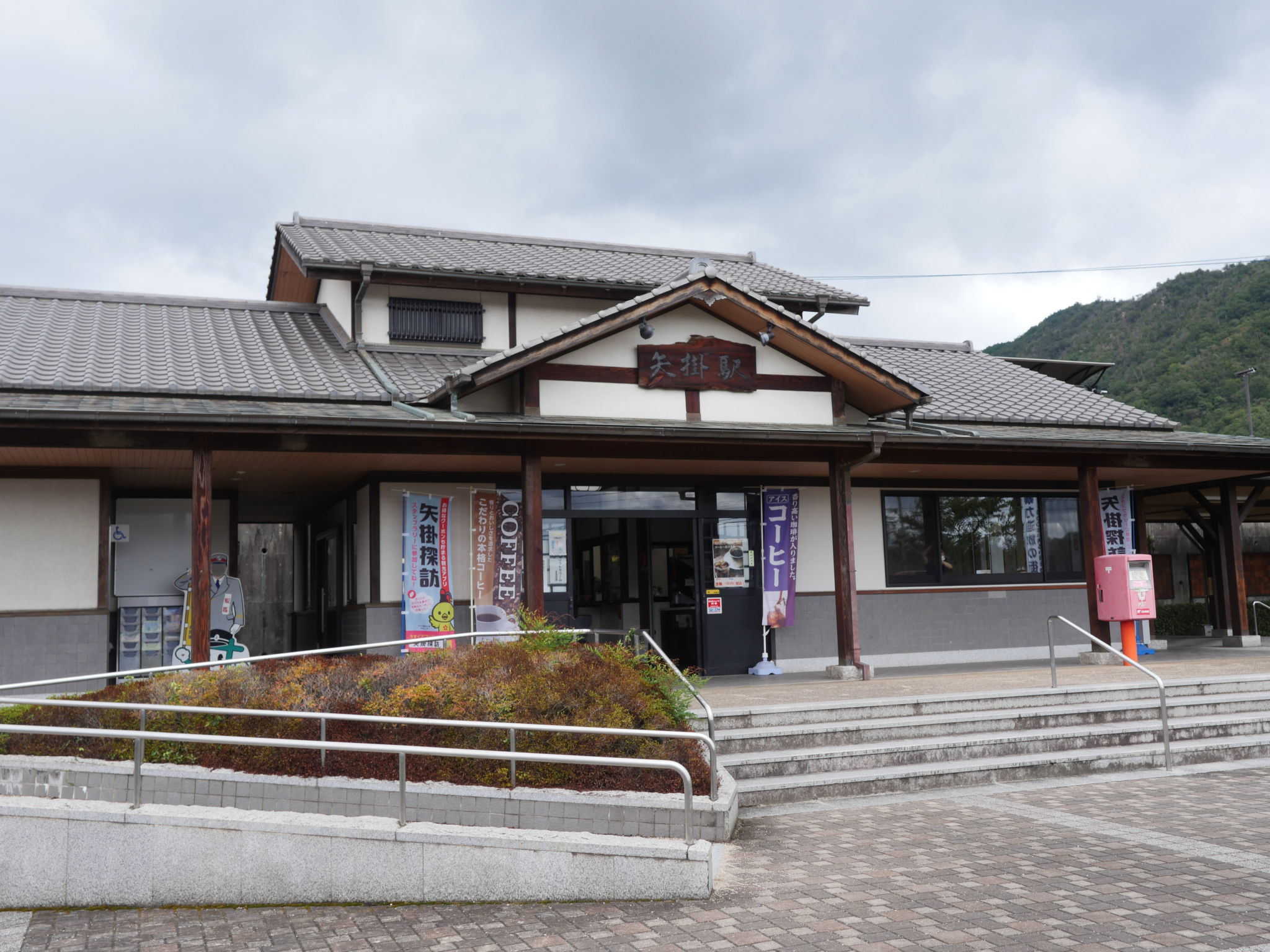 宿場町のたたずまいを思わせる和風の駅です。