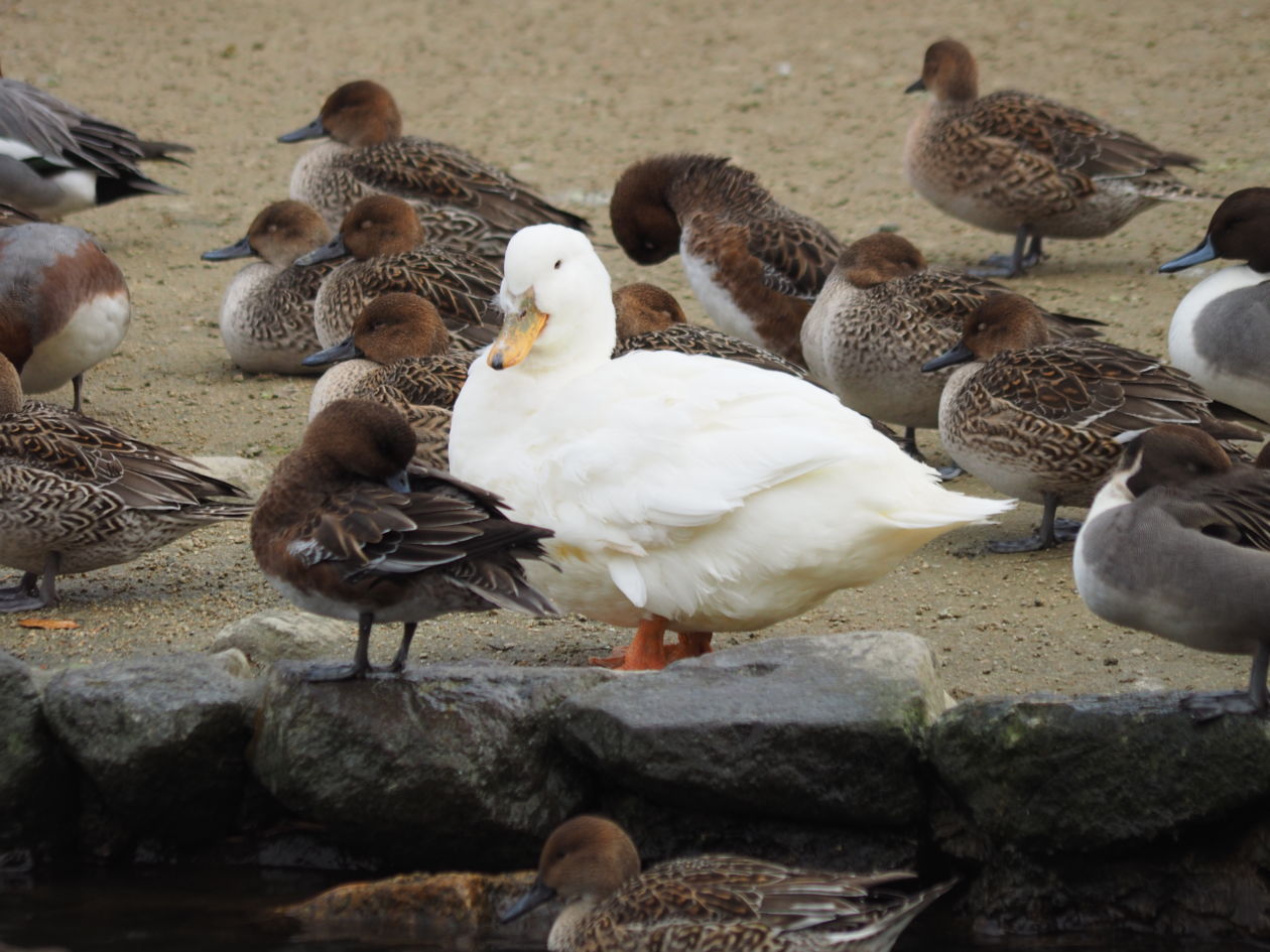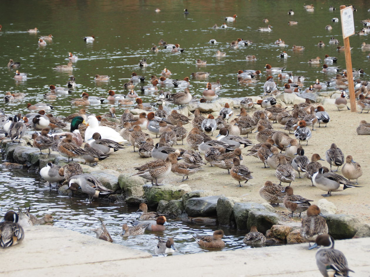 普段は数羽の白鳥、アヒルが漂っているだけの池が一気にゴミゴミし始めます。
