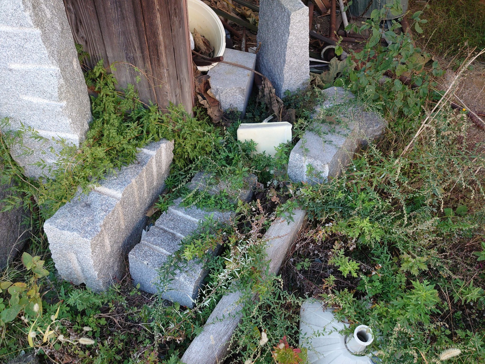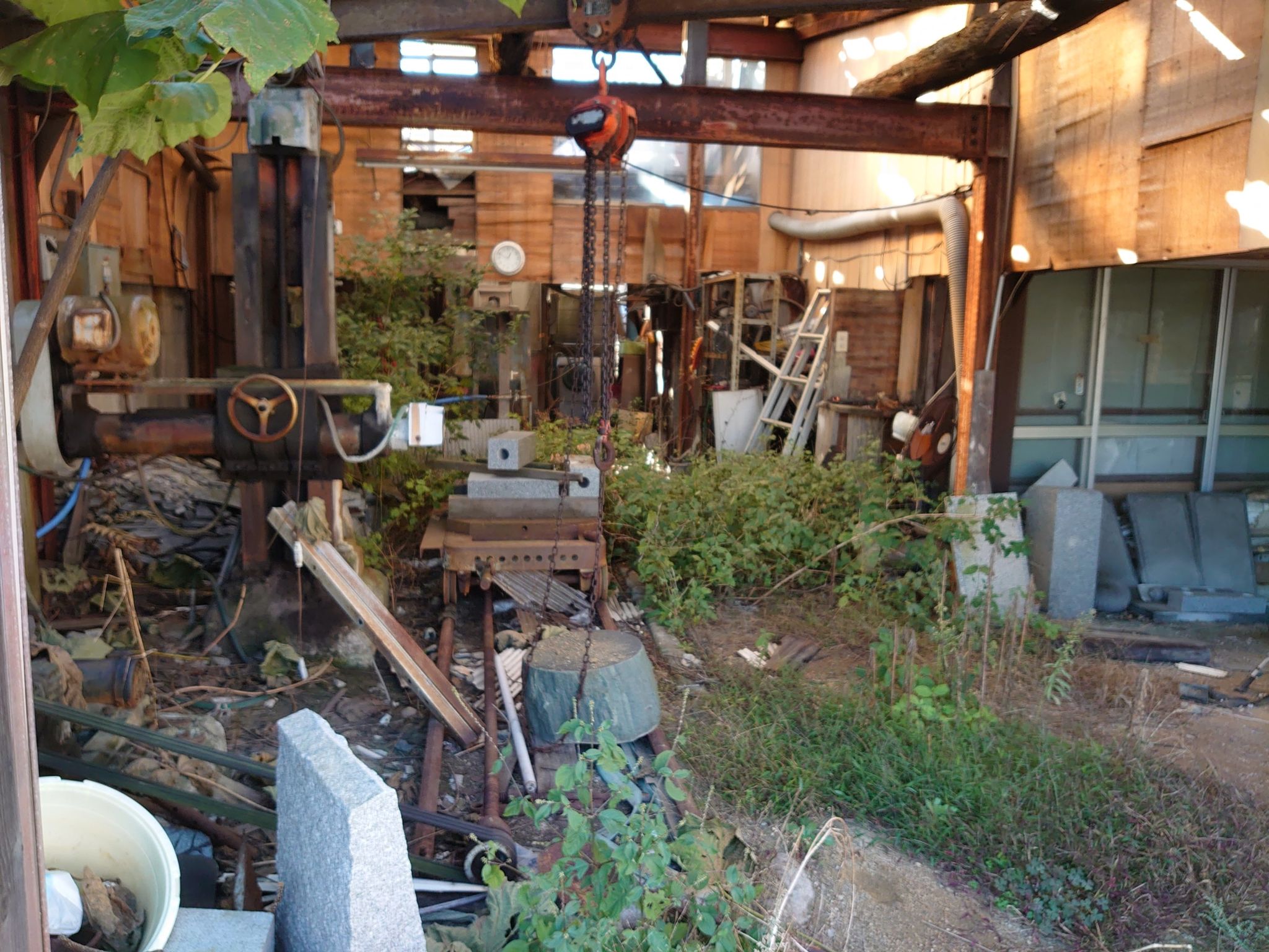 何のお店かと思ったら「石材彫刻店」と書いた看板が残されています。