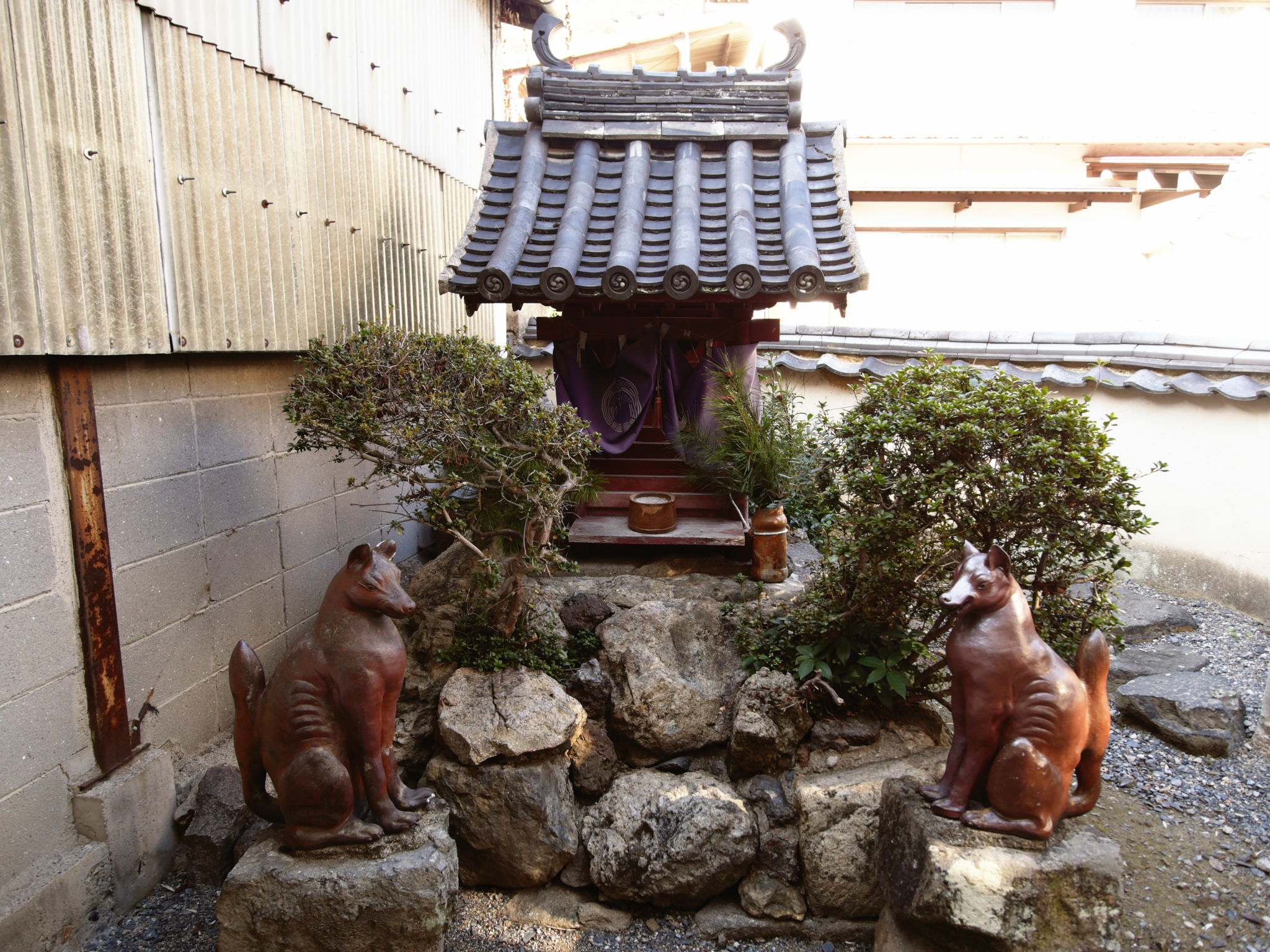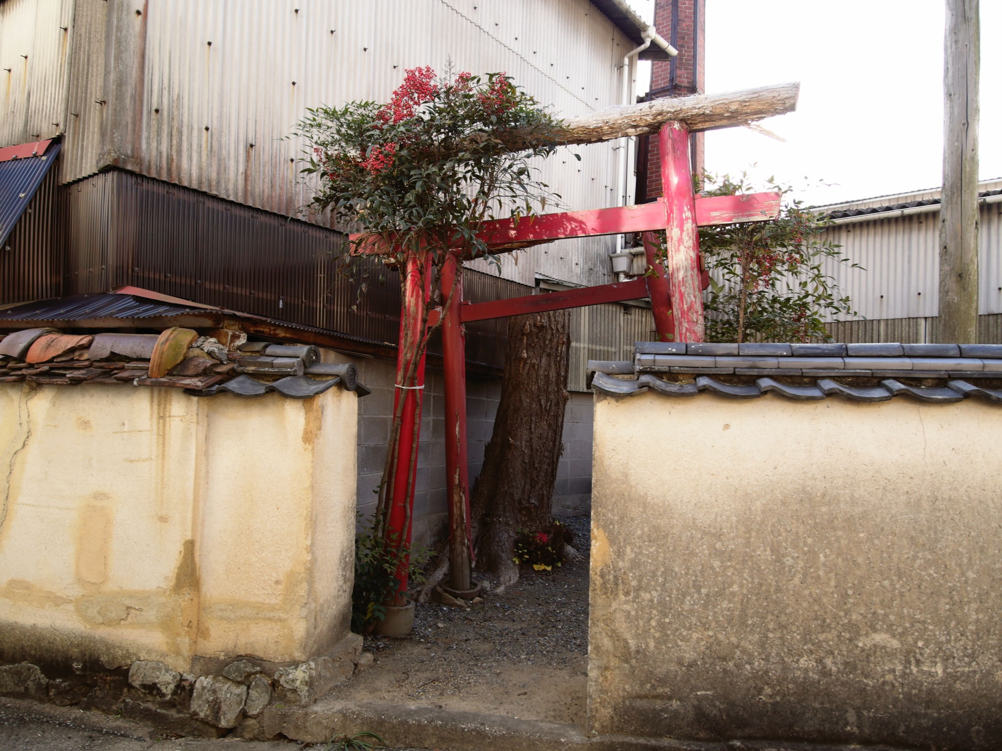 備前市伊部を散策していると、工場の脇に小さなお稲荷さんがあるのを見つけました。