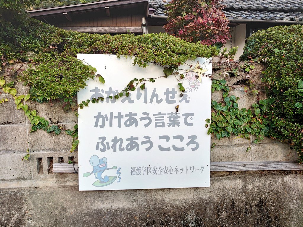岡山市北区建部町福渡を散策していると、通学路と思われる道でこんな看板を見つけました。