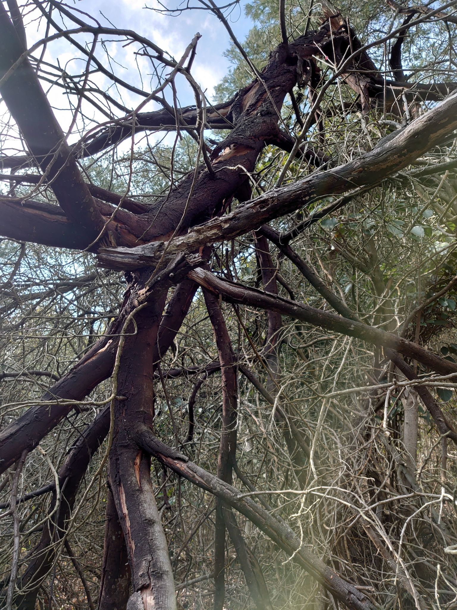 こんなダイナミックな倒れ方をしている木もありました。
