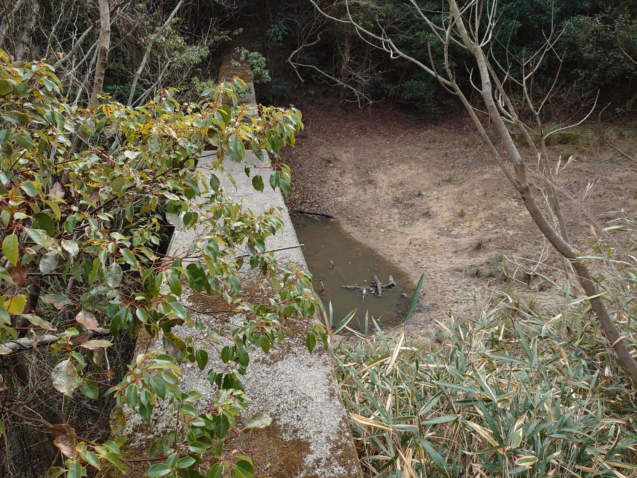 ダムの奥側が僕が進もうとしていた場所ですが、ここはただの斜面でした。