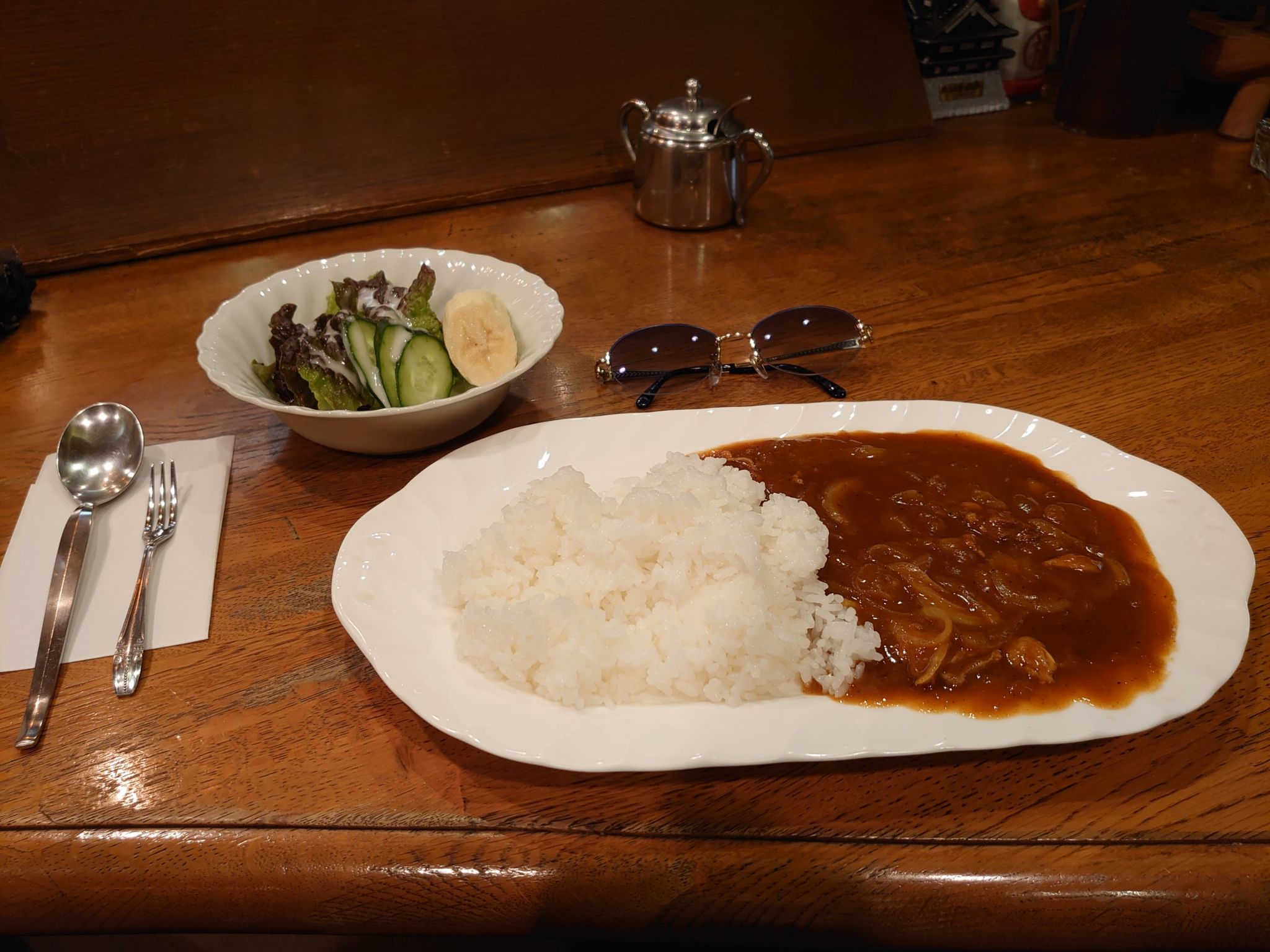 サラダはバナナ付き。