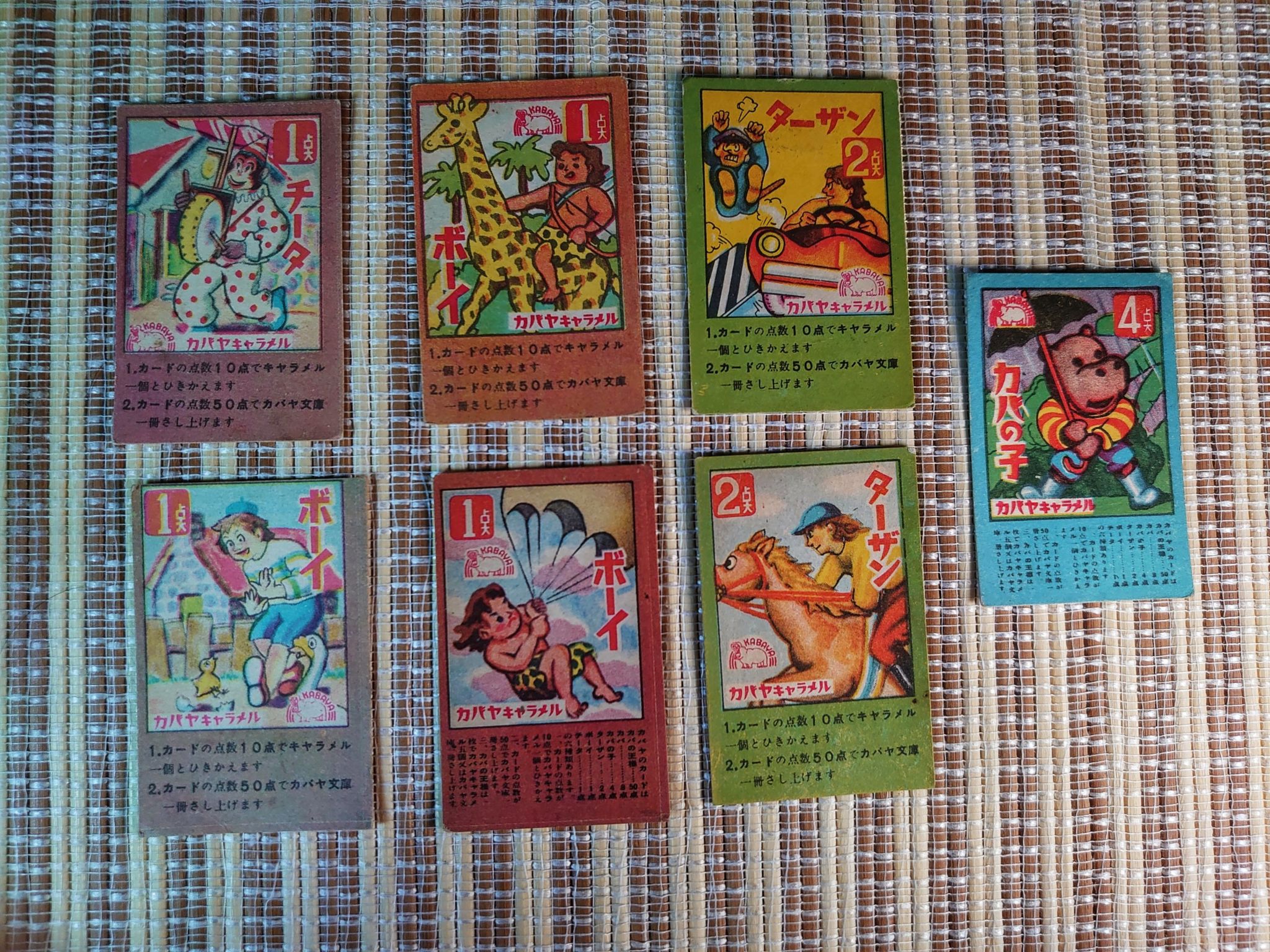 写真の中にある1点、2点、4点、そして更にその上の8点のカバ、50点のカバの王様のカードがありました。