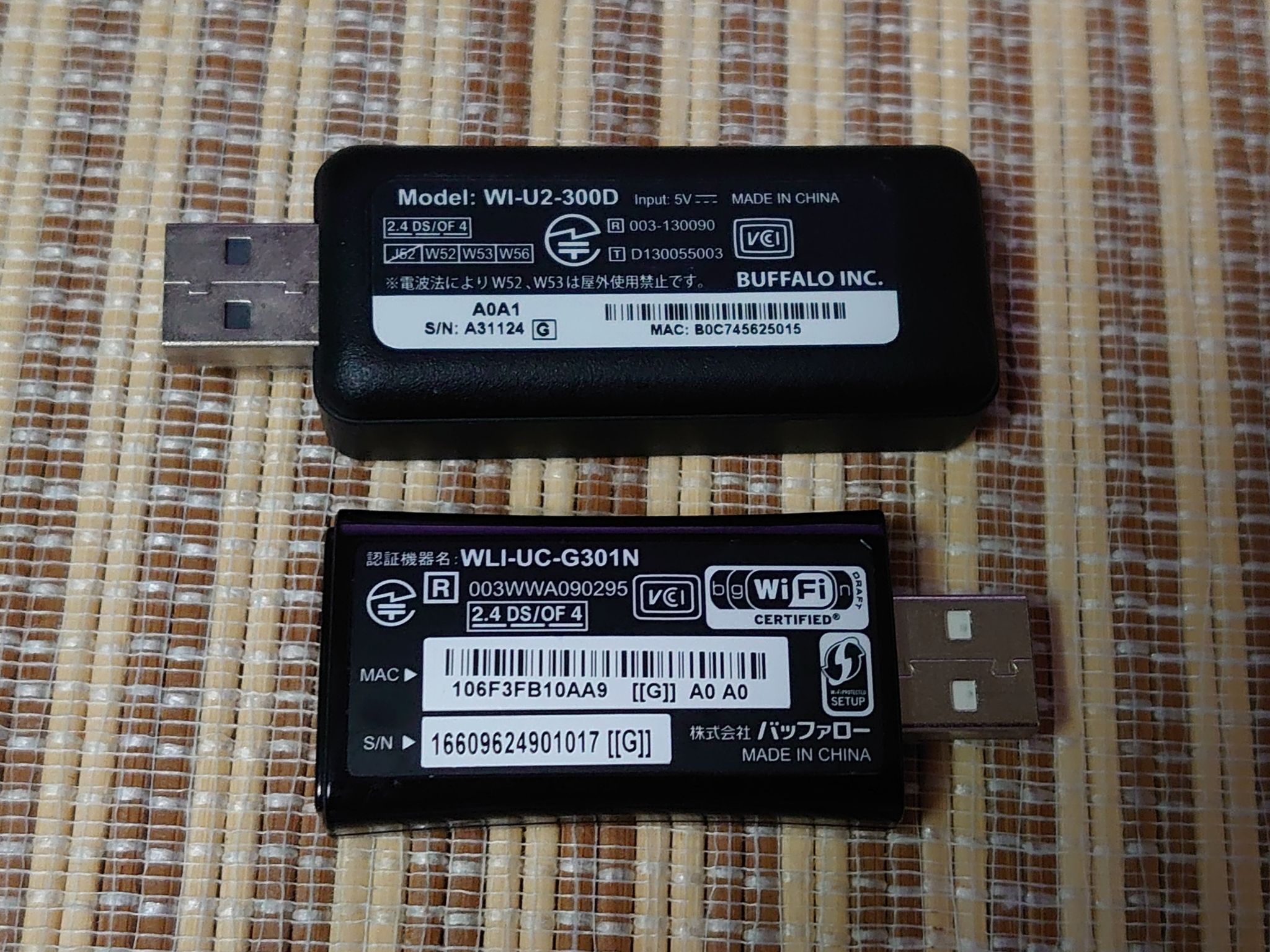 少し前の物ですがバッファローのWI-U2-300DとWLI-UC-G301N。
