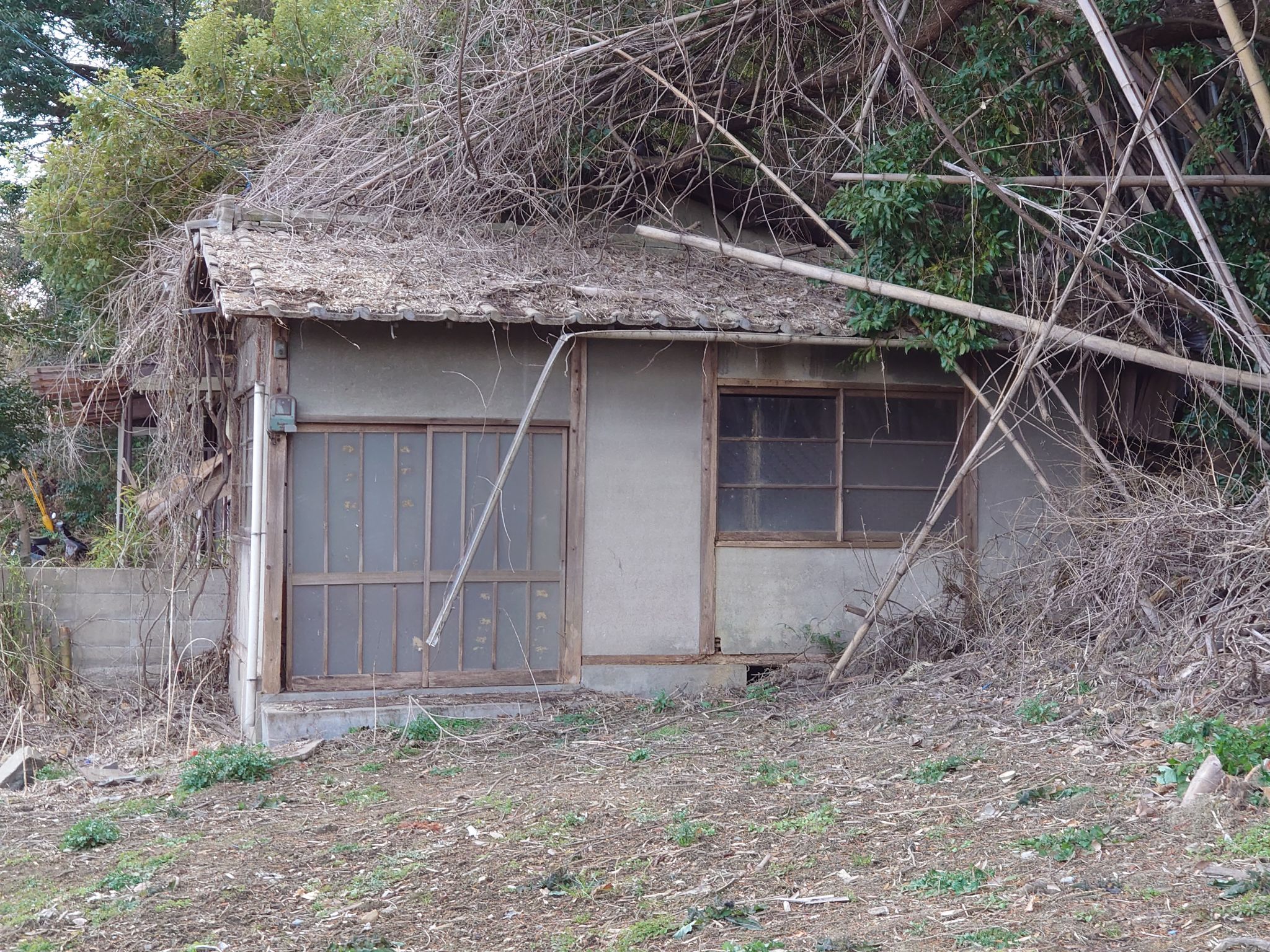 建物の状態はそれほど悪くなさそうですが、裏山から竹やぶが覆いかぶさってきています。