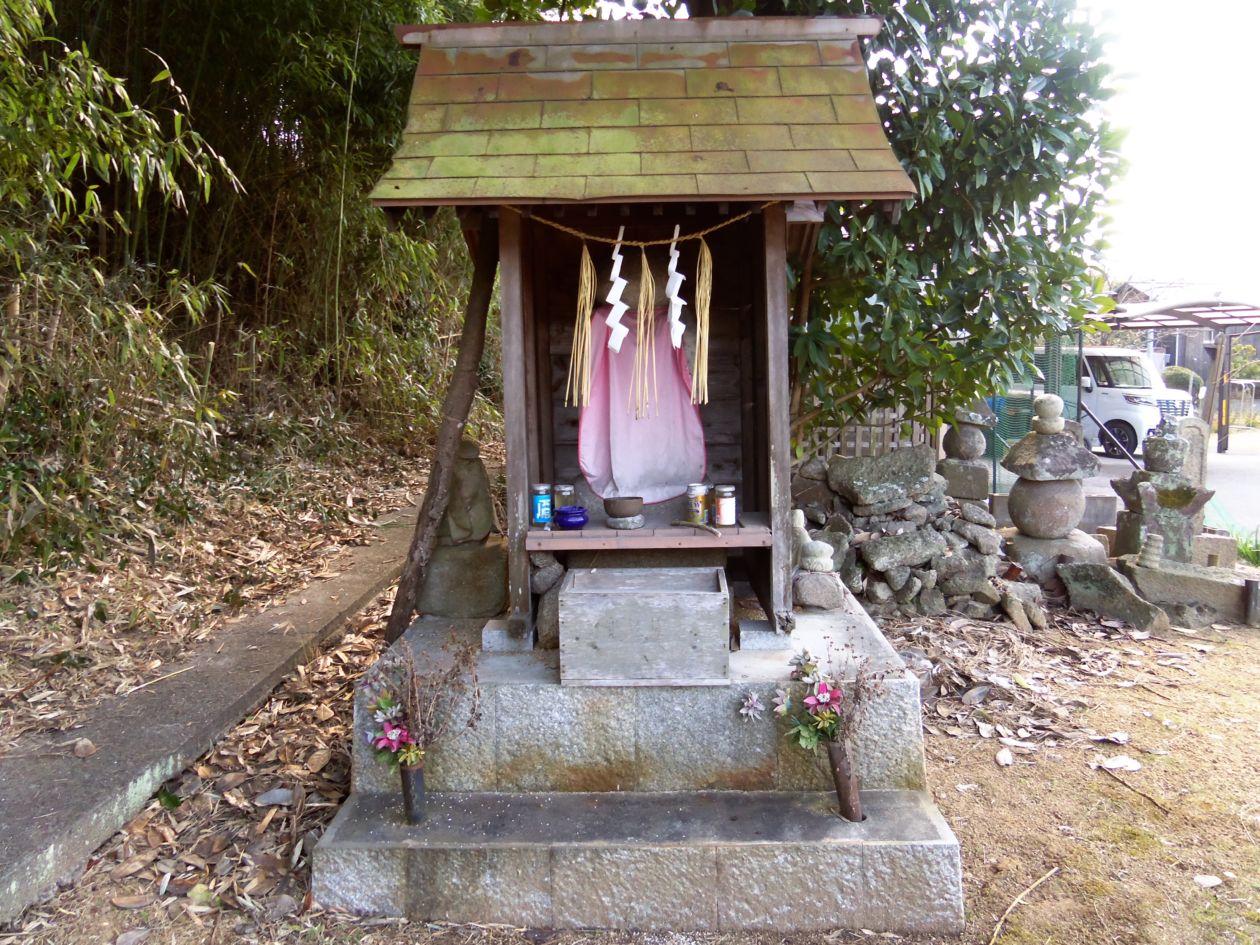 祠の後ろに石が積み上げられていますが、これが元々は何かしらの建造物だったそうです。