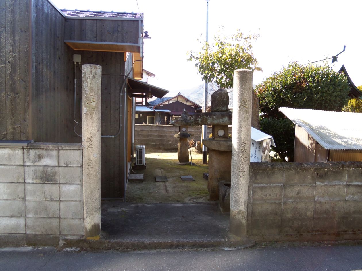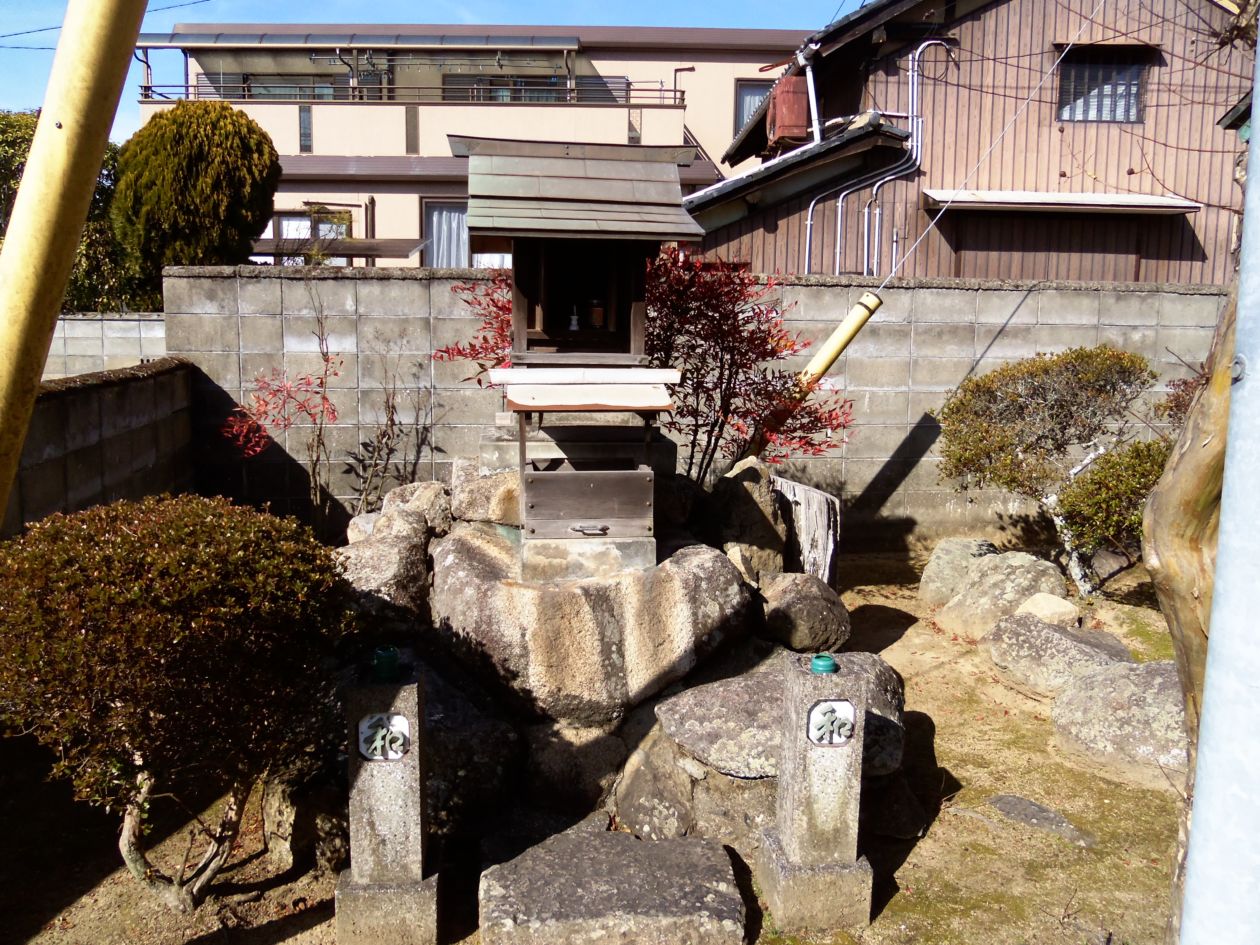 奥の方に祠のような建物が見えます。