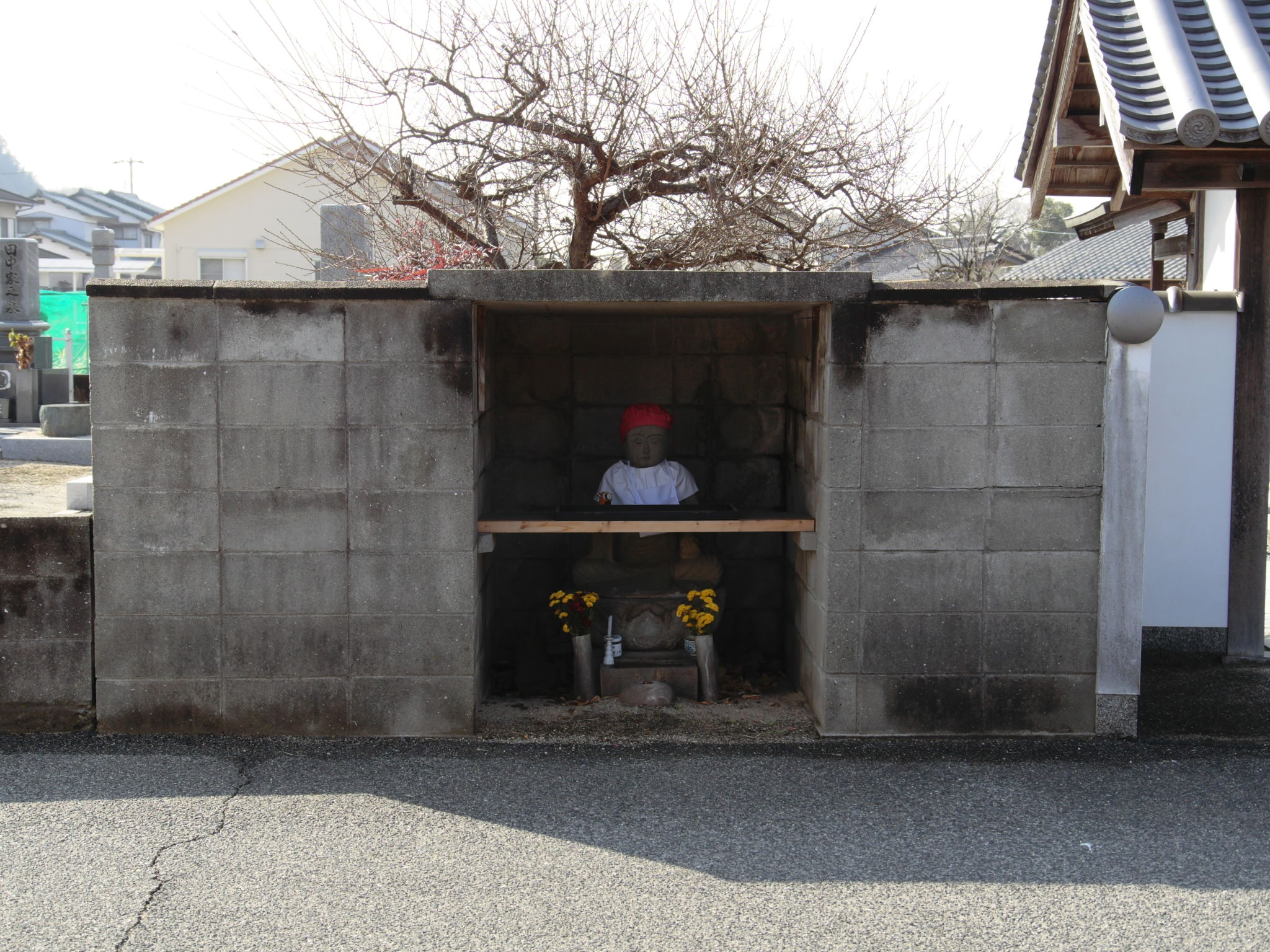 余談ですが山門の隣にコンクリートのお部屋に入ったお地蔵さんがおられます。