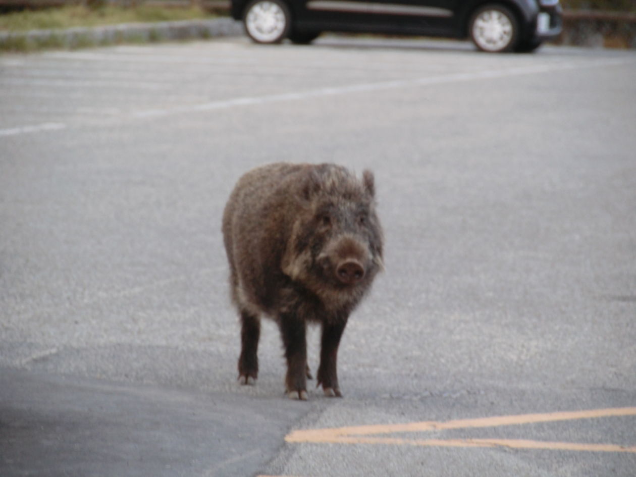 夕方になると駐車場にイノシシがよく出没するという噂は聞いていました。