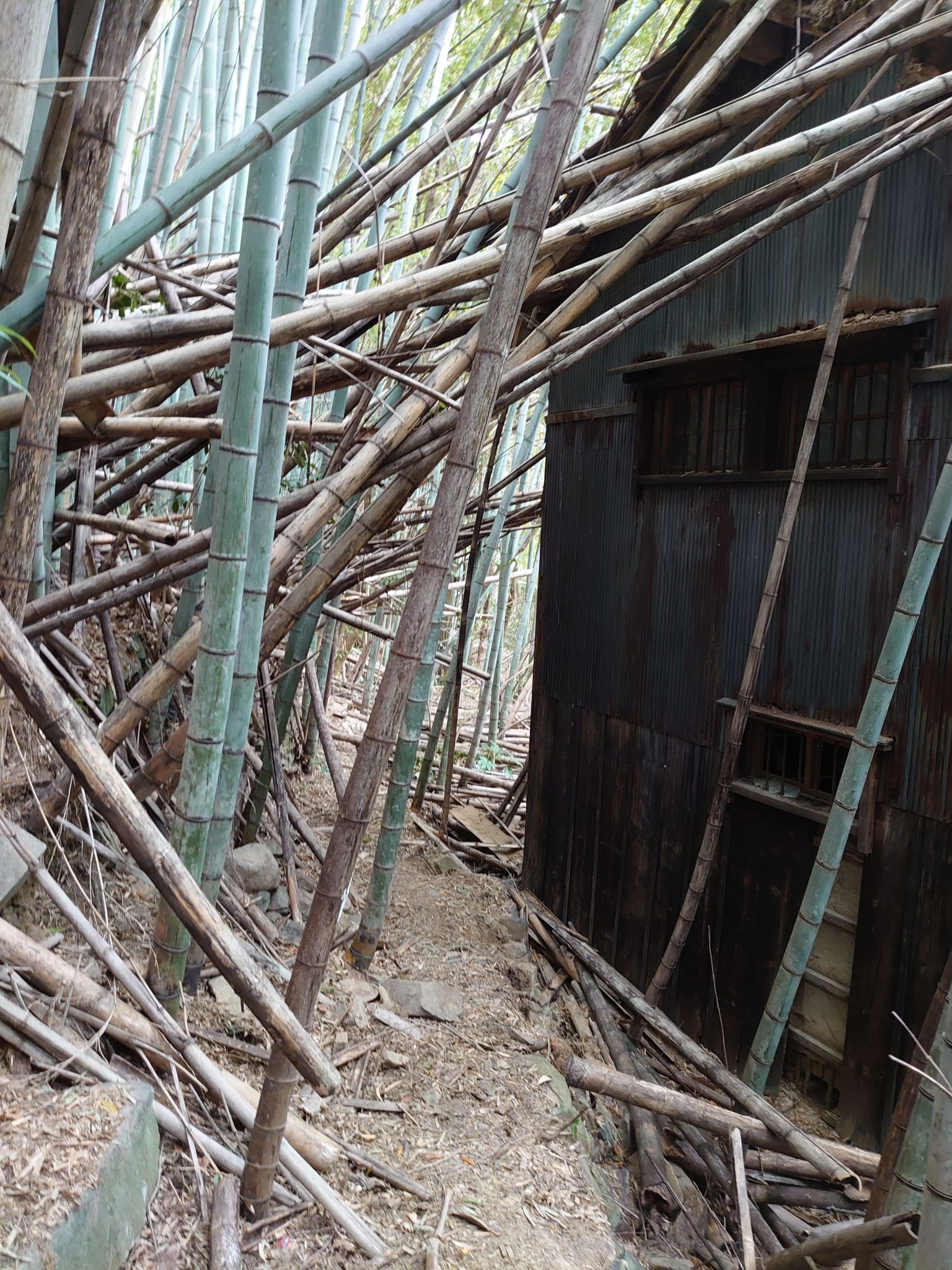 尚、この建物は倉庫のような使われ方をしていたようですが、既に入り口の周辺も竹林化していて中に入るのは非常に難しそうです。