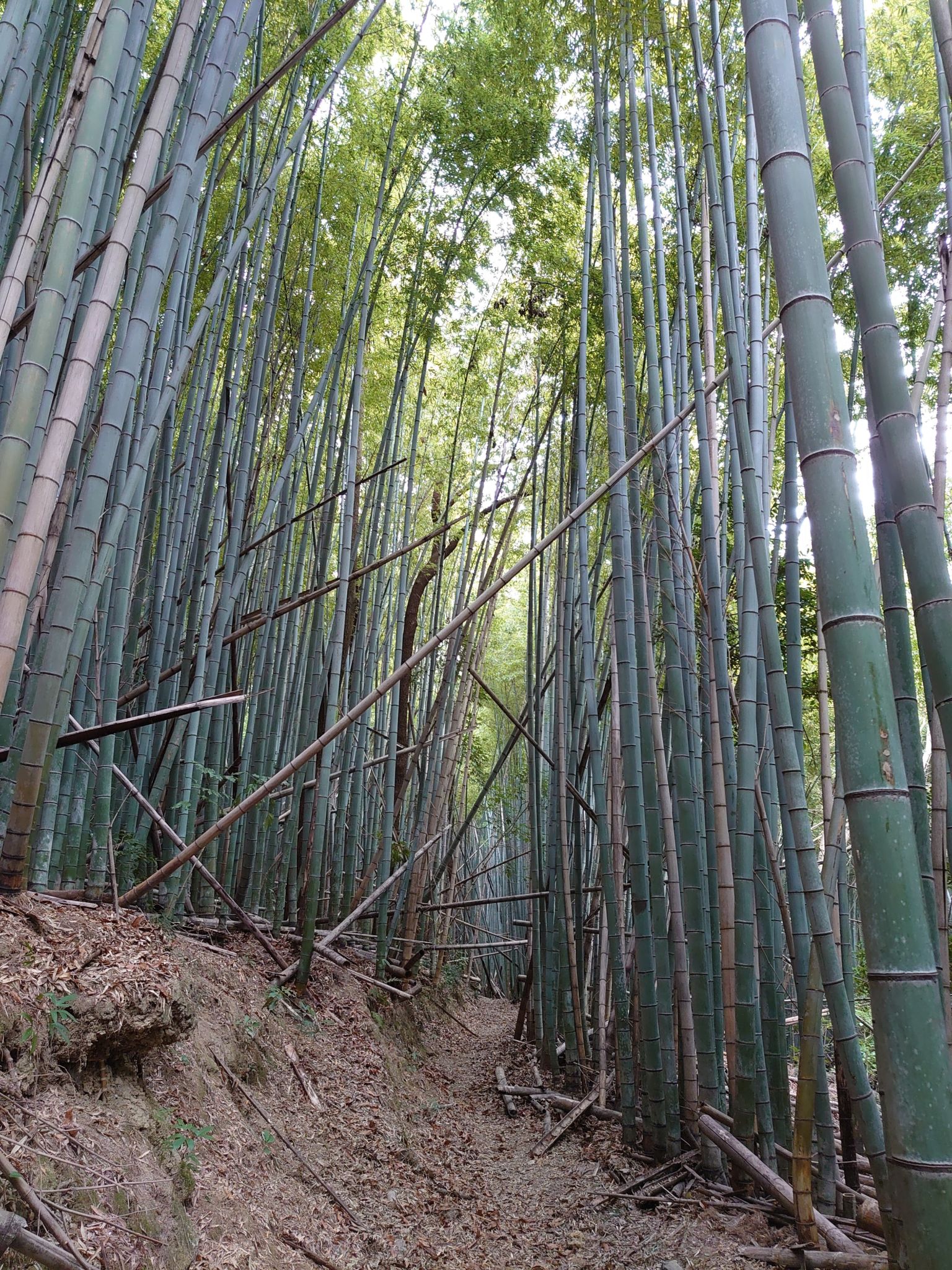 道は決して良いとは言えず、上の写真のような荒れた竹林の中を進みます。