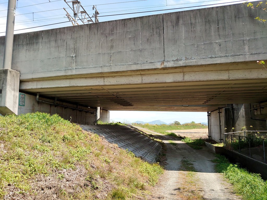 倉敷市茶屋町の畑に沿うように続く道を進んでいくと、最終的に宇野線の高架橋の下に到着しました。