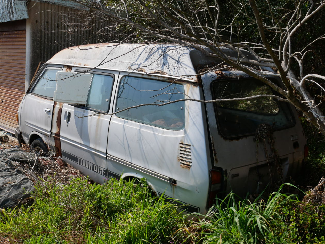 玉野市胸上の化粧地蔵巡りをしている最中でタウンエースの古い車体を見つけました。