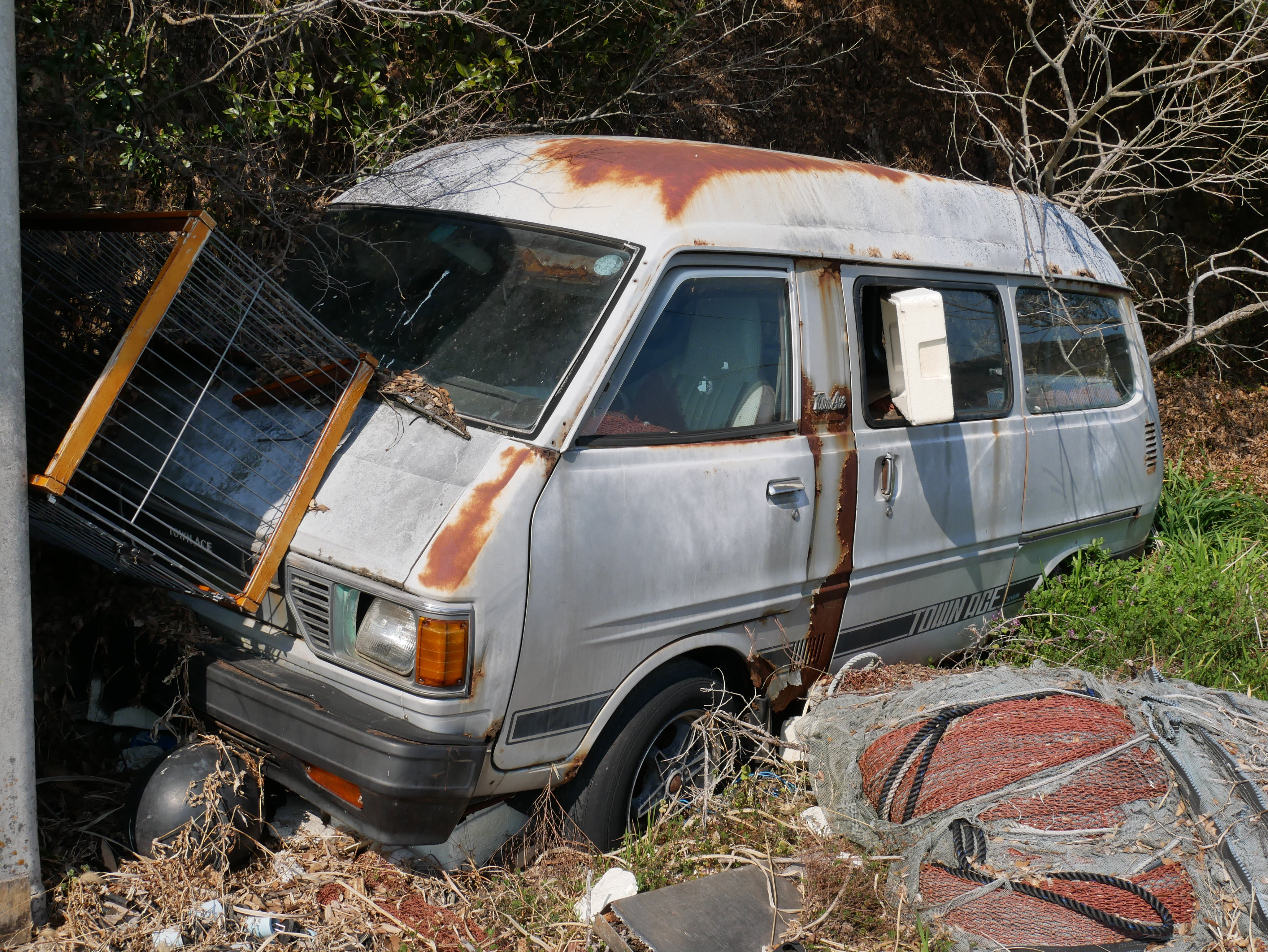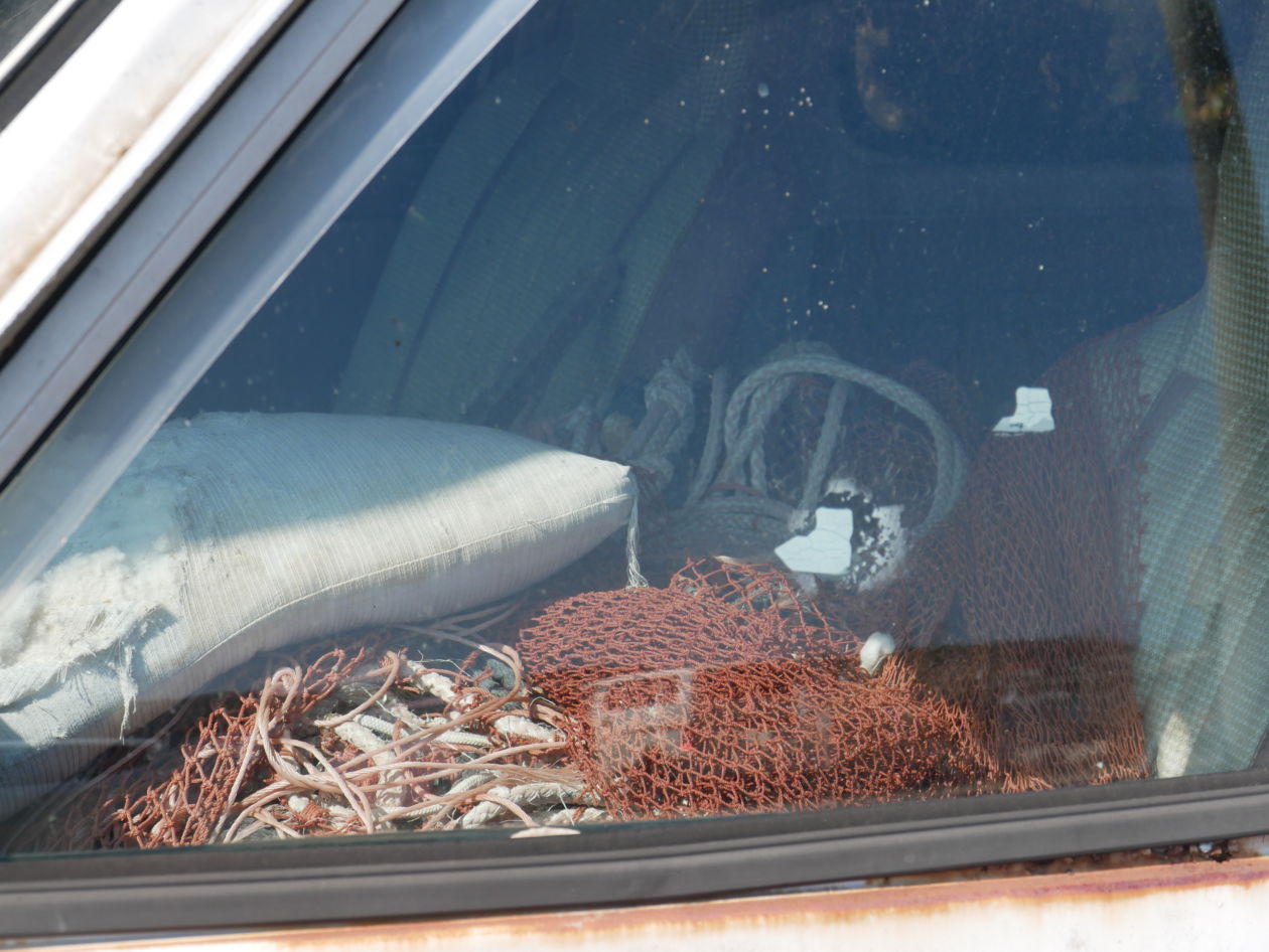 この車体も車内には漁に使われるような網やロープなどがぎっしり詰め込んでありました。
