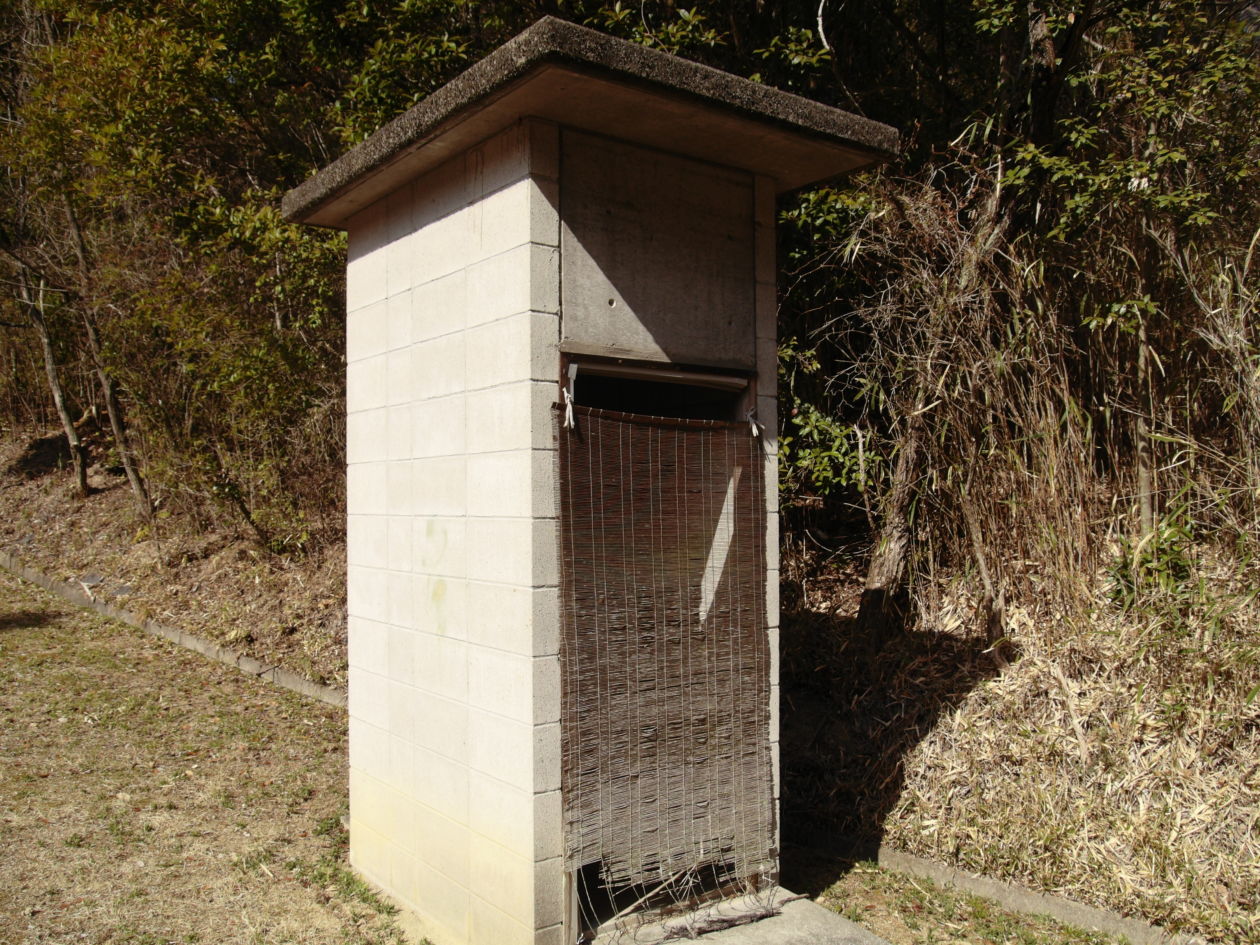 トイレの建物ですが、出入り口はなく簾のみ。