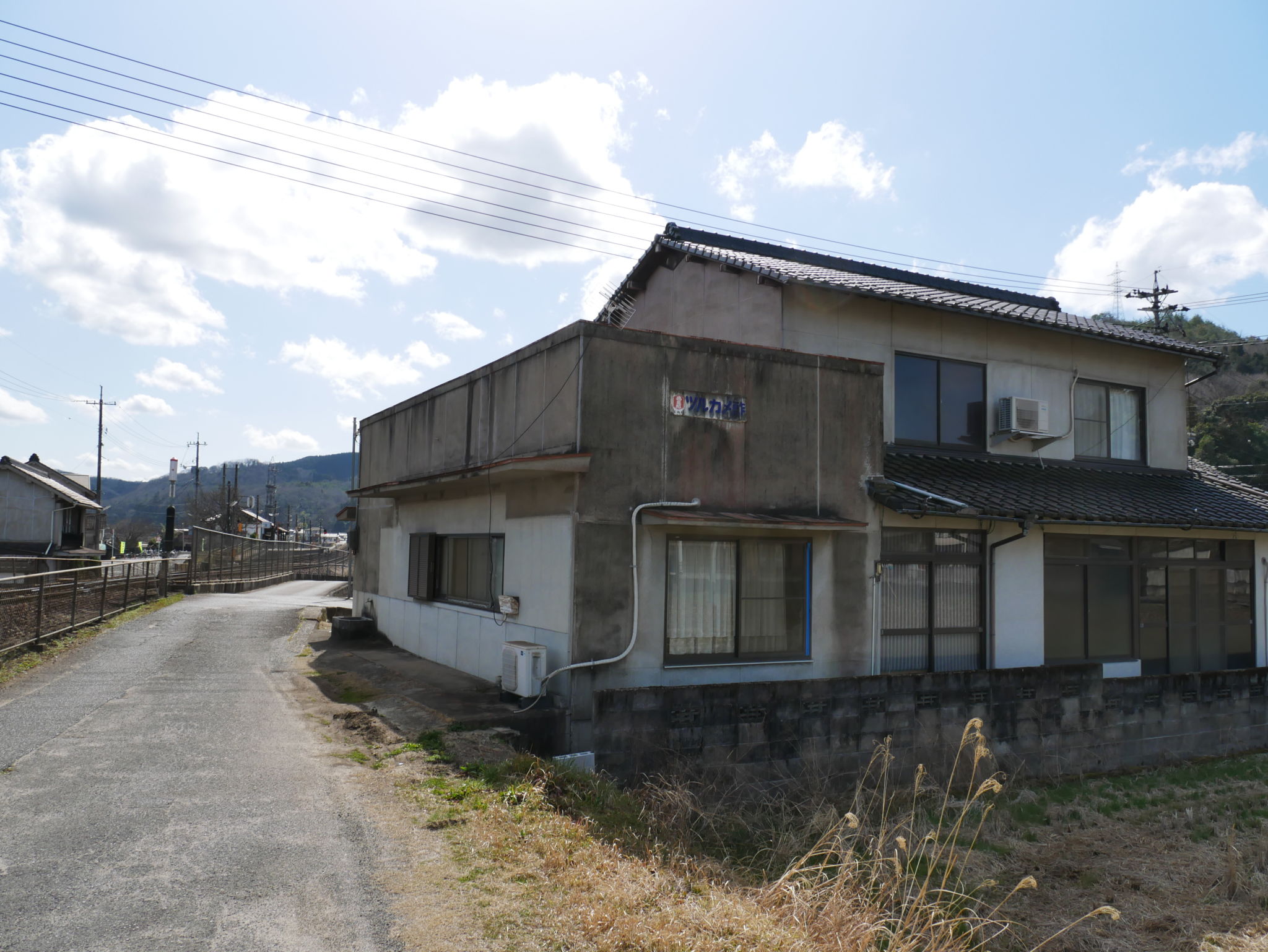 建部町を散策していると、家の一角だけが看板建築のようになっている建物がありました。