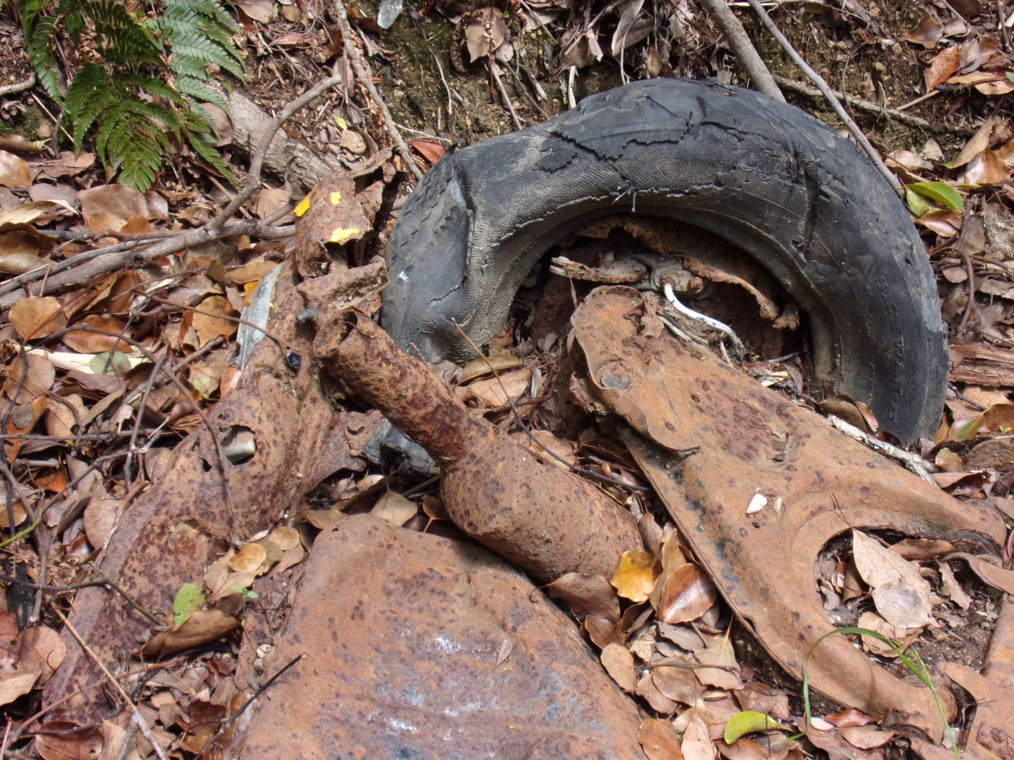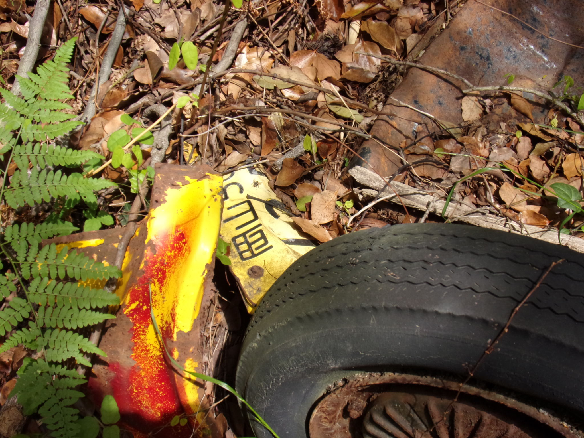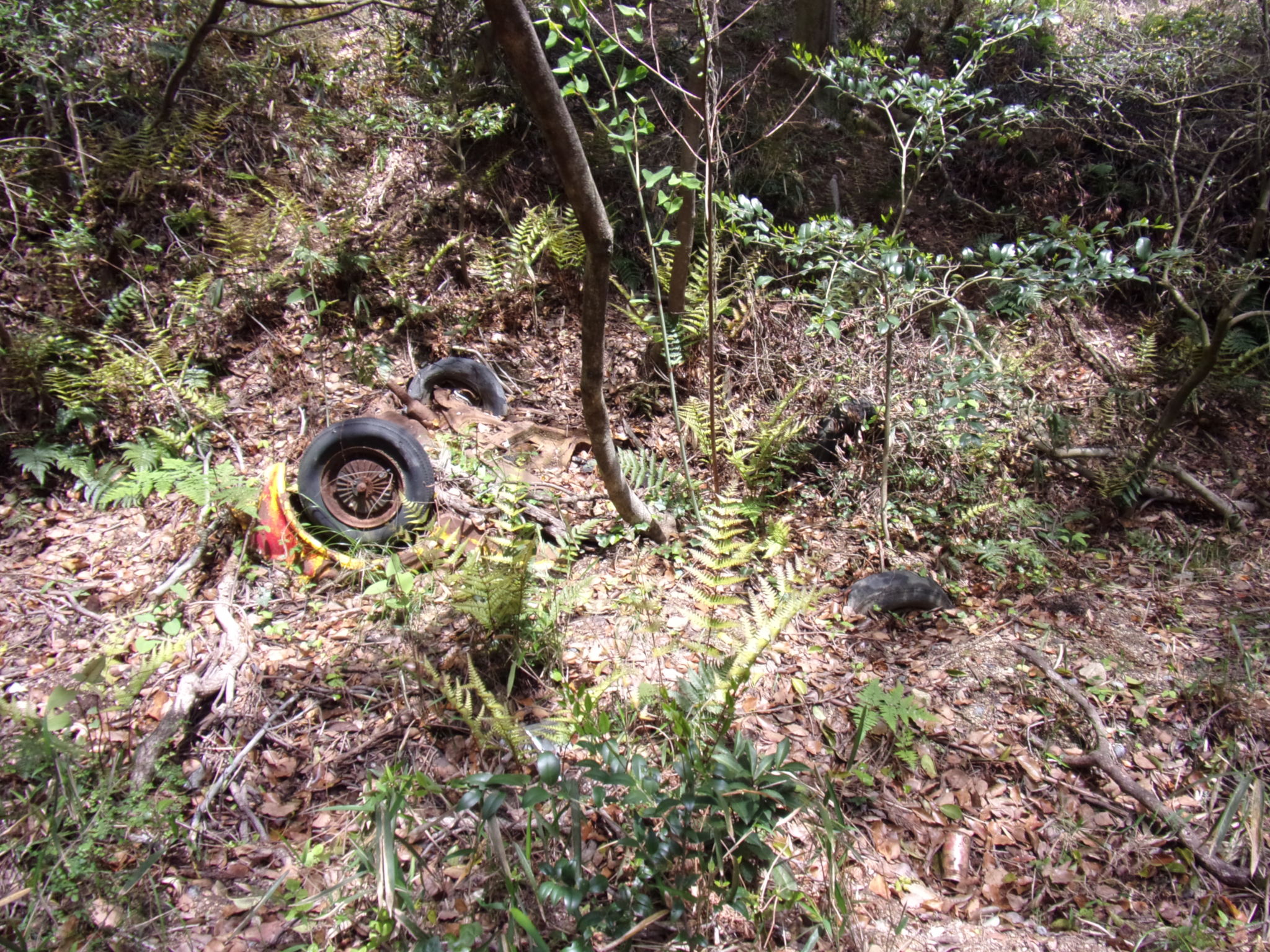 今でこそ木々や葉に埋もれてしまっていますが、落ちた当初は山道からもかなり目立っていた筈です。