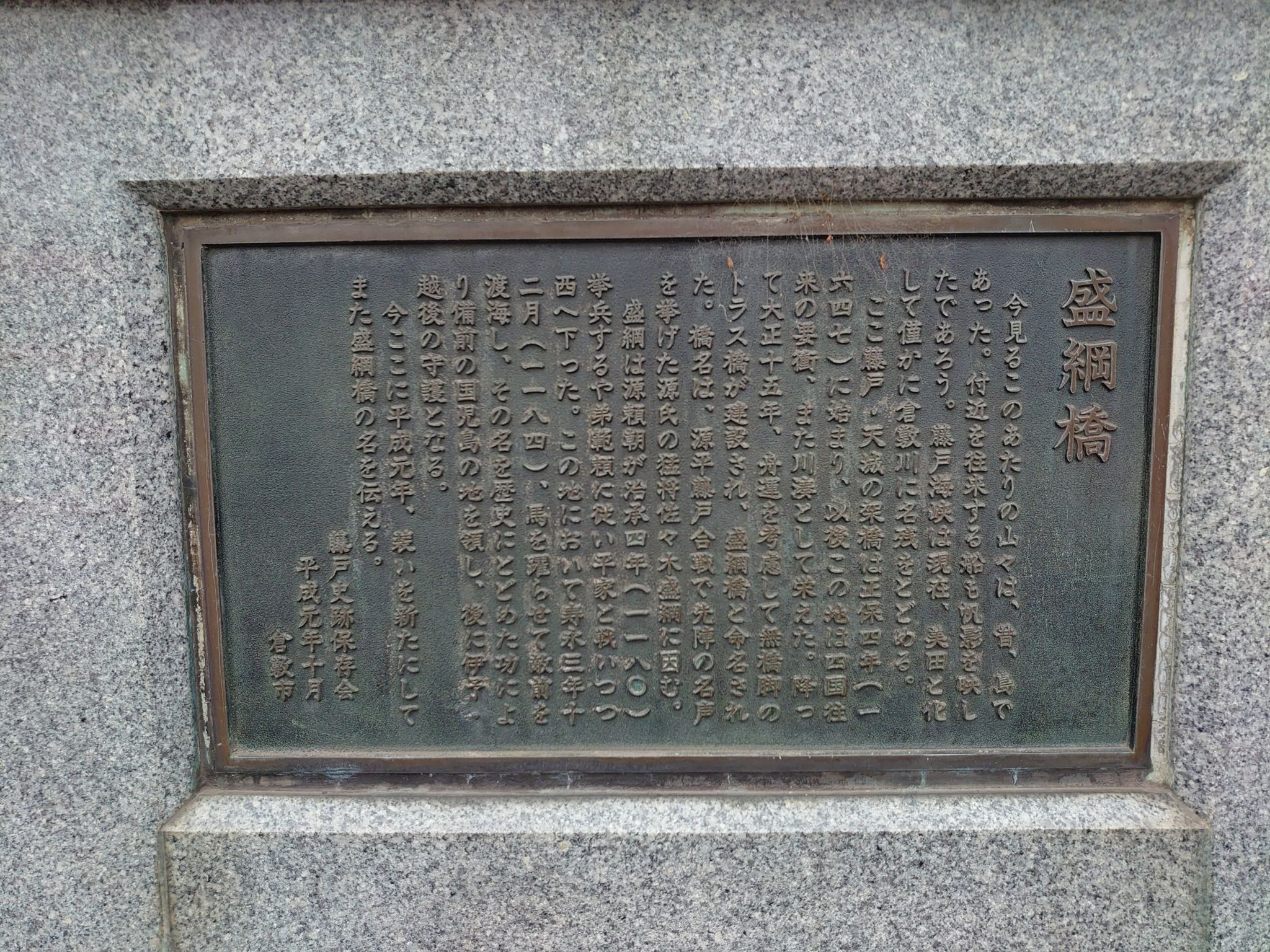 倉敷市藤戸町には盛綱橋という、源平合戦の武将の名前が与えられた橋が架かっています。