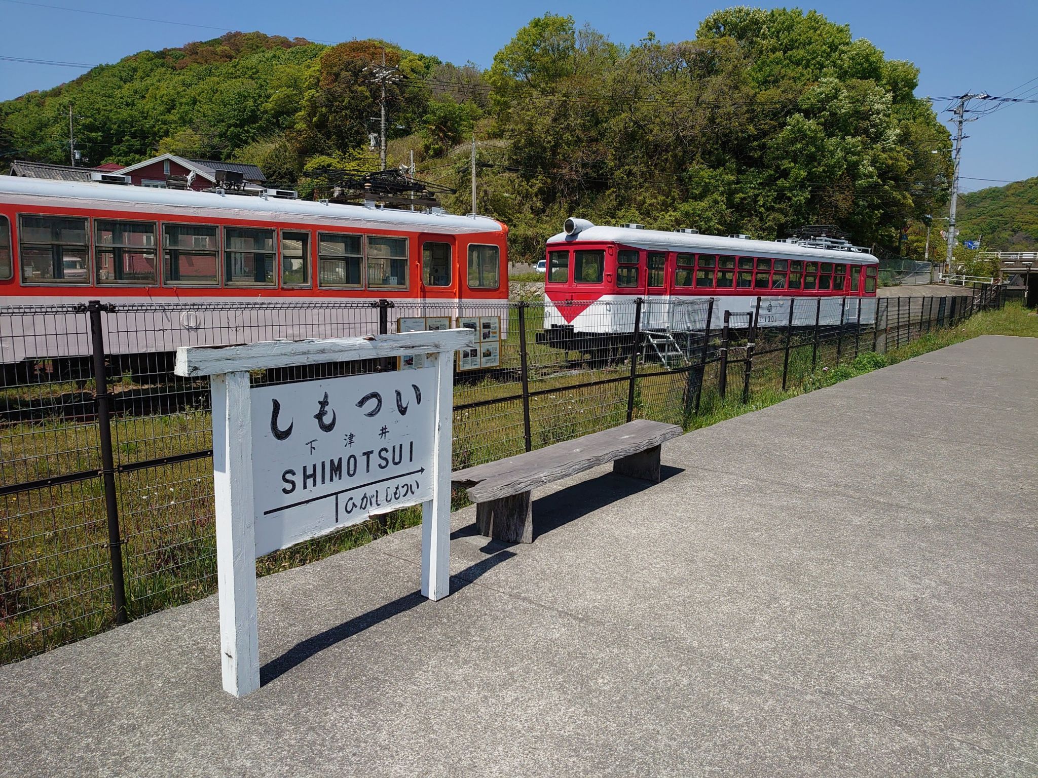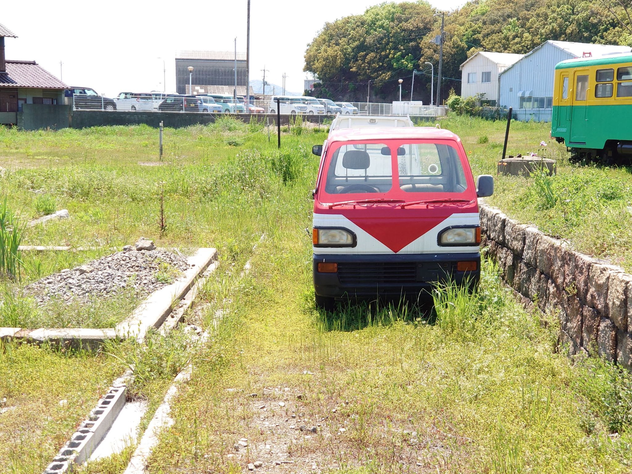 駅跡に残されているモハ1001と同じ塗装を施した軽トラがあります!