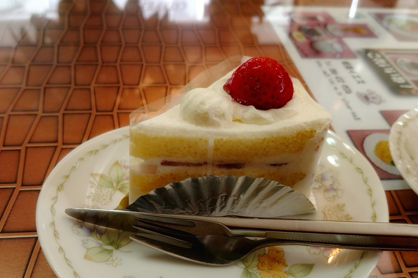 昭和歌謡を楽しみながら食べるショートケーキ。