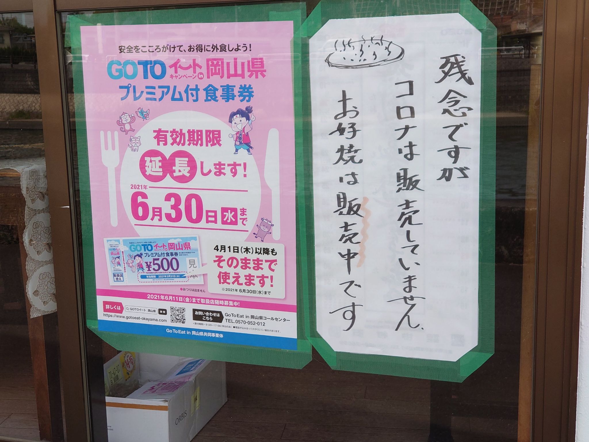「残念ですが コロナは販売していません。お好み焼きは販売中です」