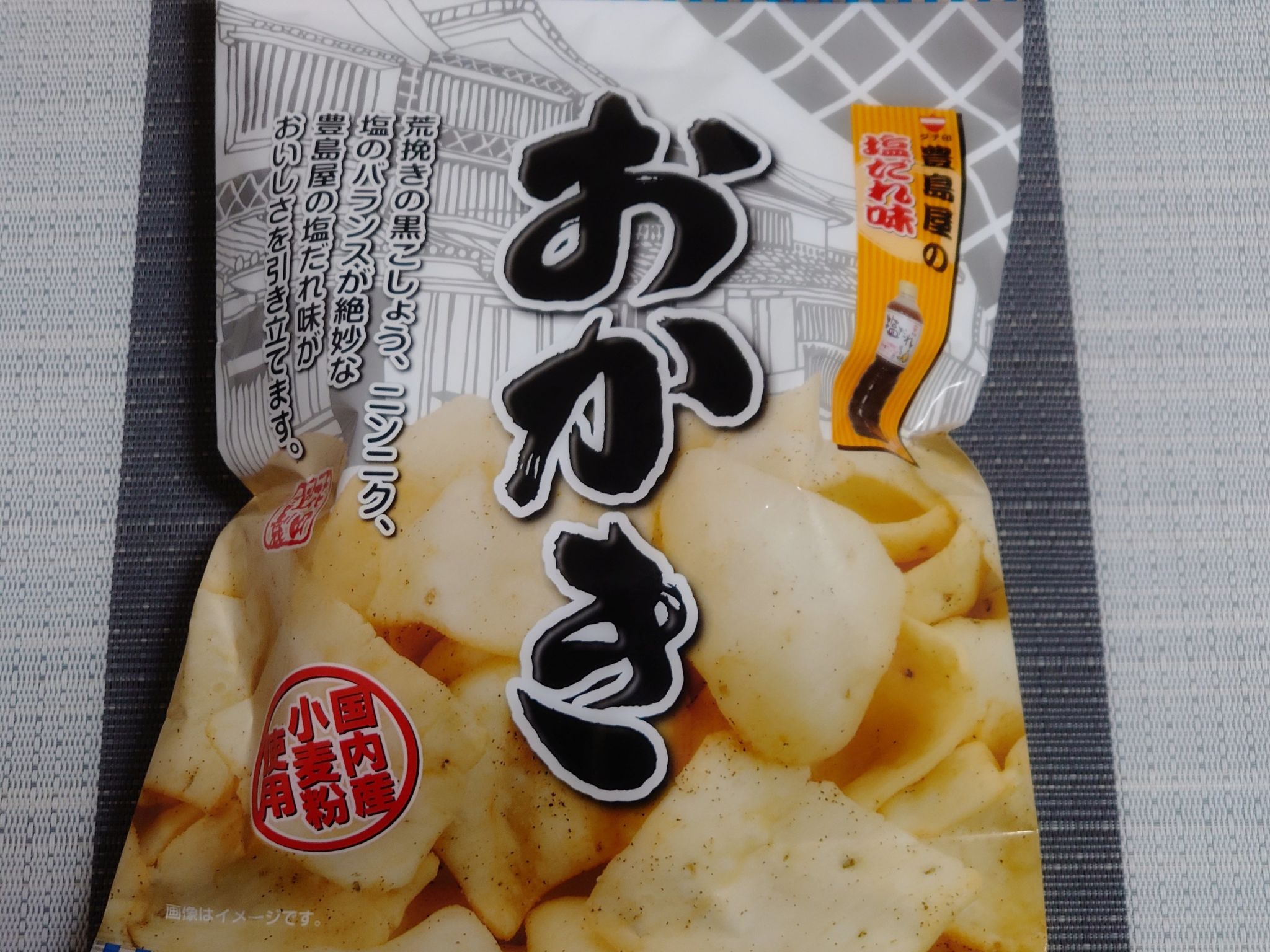 玉島の花田食品のおかきで、同じく玉島の豊島屋塩たれ味です。