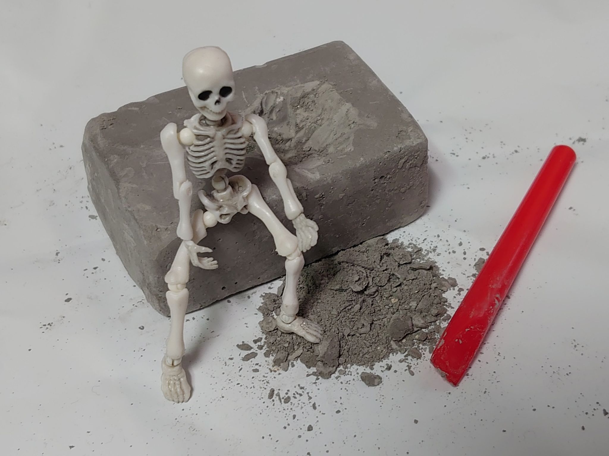 石膏の中に詰め込まれた化石のオモチャを掘り出すというものです。