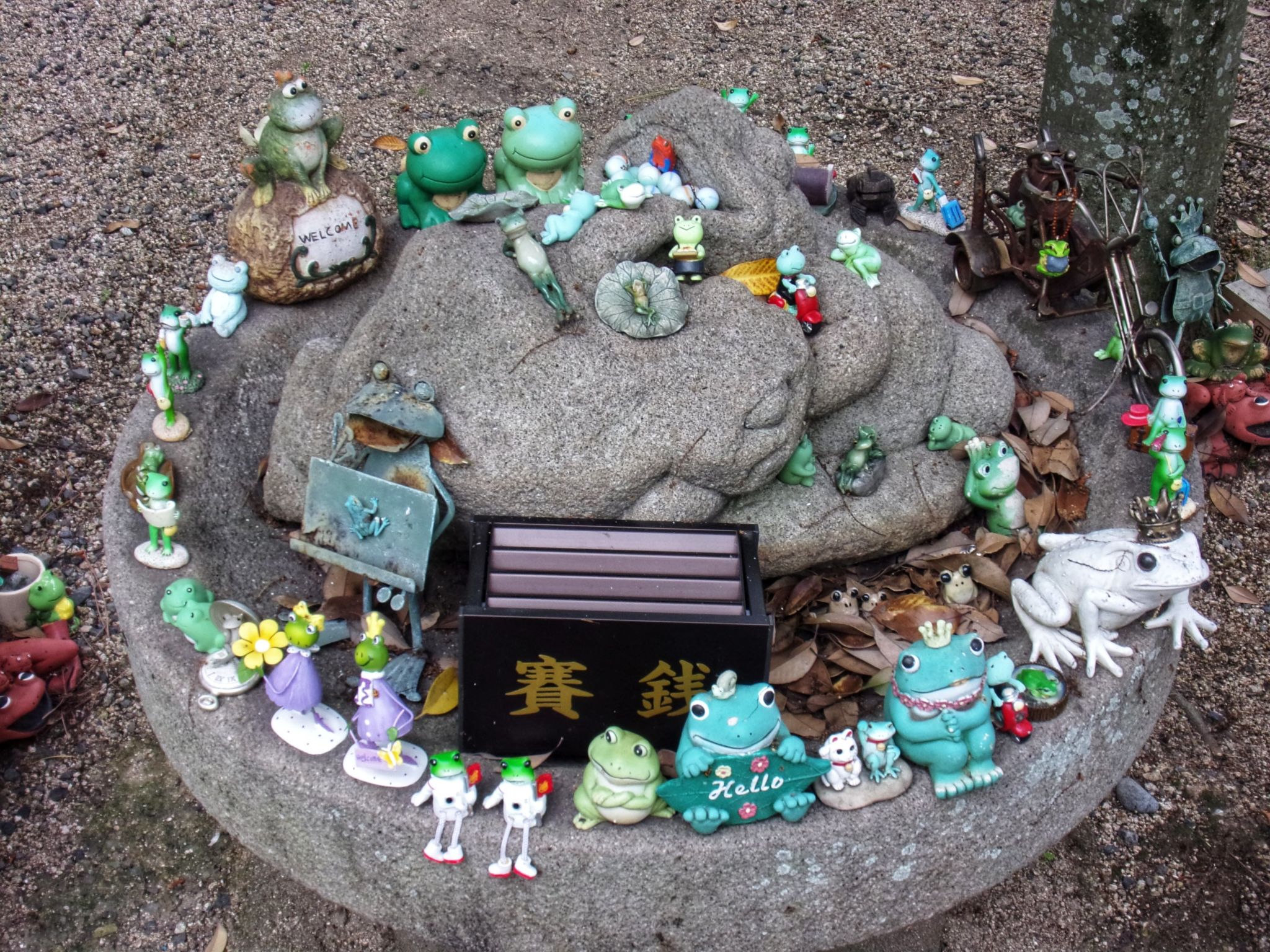 ちなみに石の中央にある足を伸ばしたカエルは、同じものが我が家にもいます。