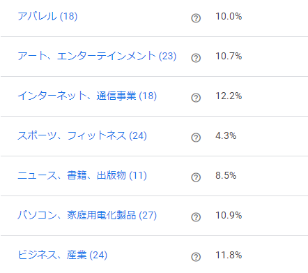 ここではサイトにどのジャンルの広告がどれくらい表示されているのかがパーセント表示されています。