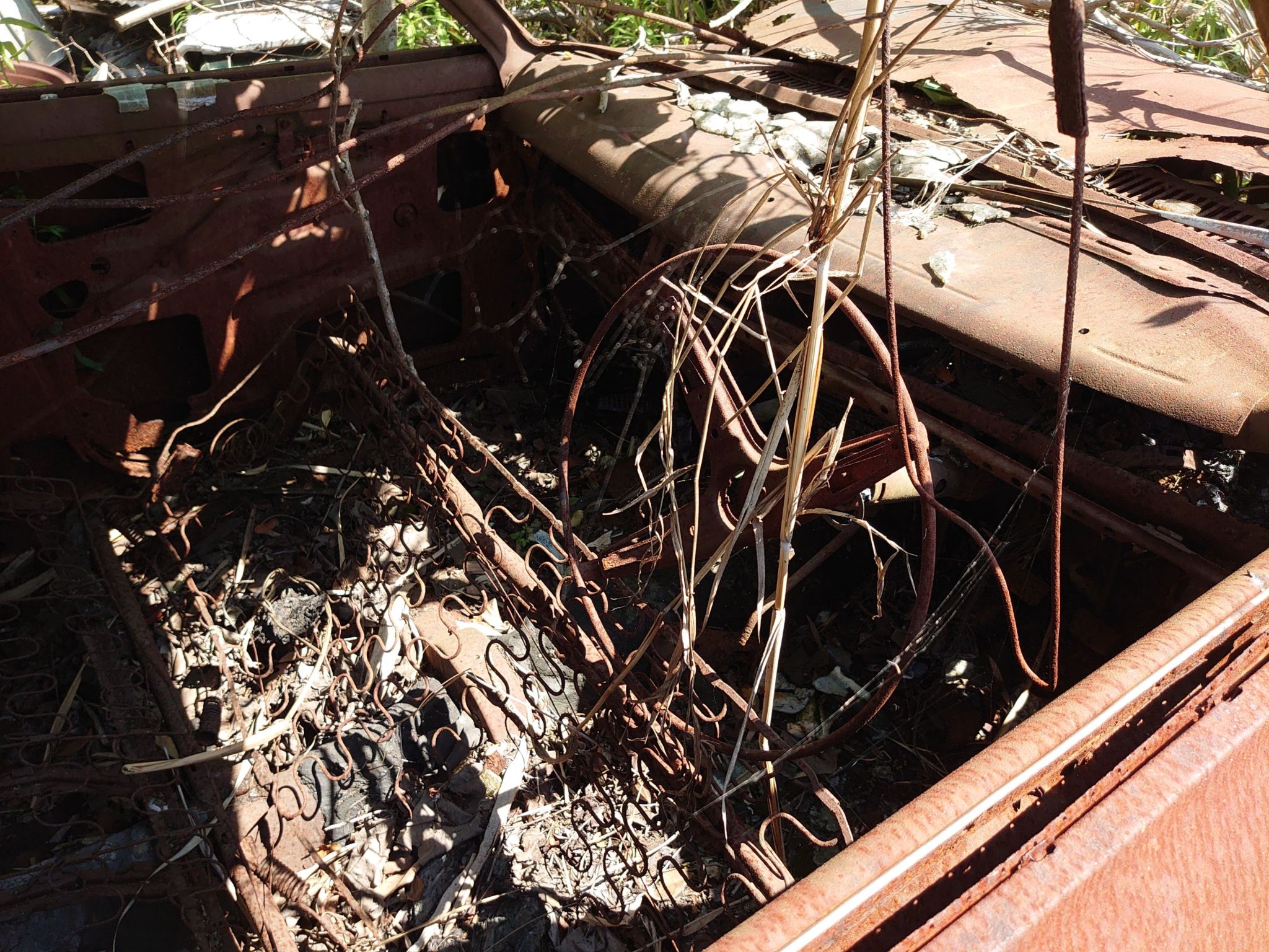 ご覧の通りシートやカーステ、メーターなどのパーツが一切残されていません。