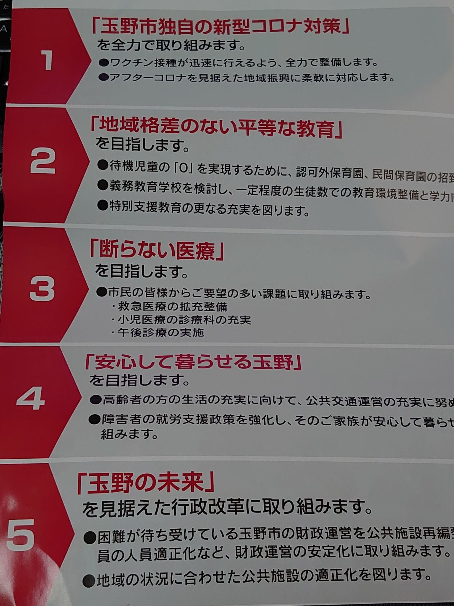 内容はざっくりと現時点の市政の延長線上にある感じを受けました。